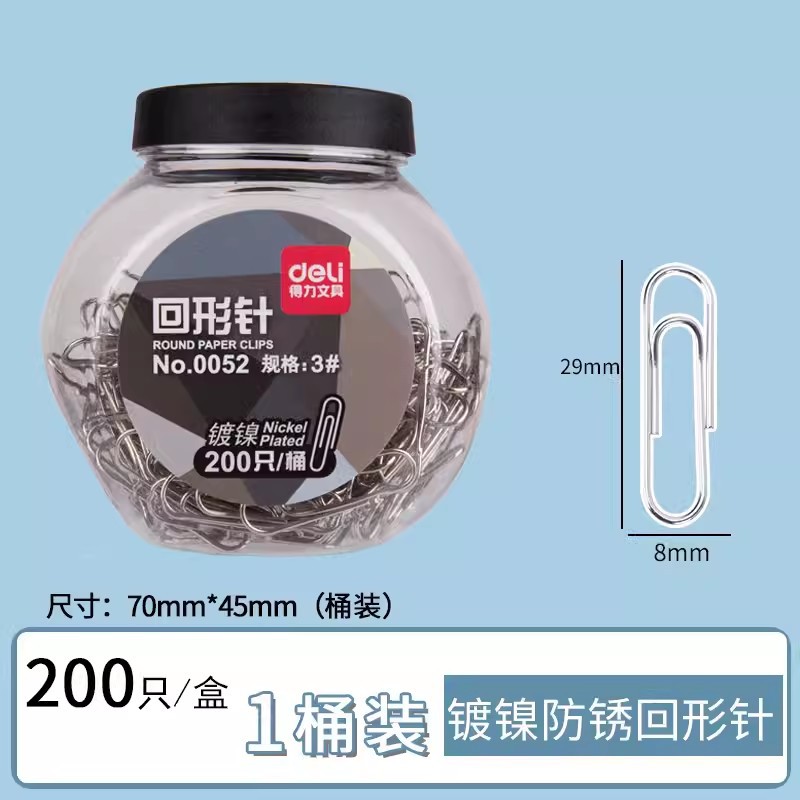 델리 0052 종이 클립 니켈 도금 녹슬지 않는 종이 클립 사무실 정보 파일 분류 저장 고정 핀 도매