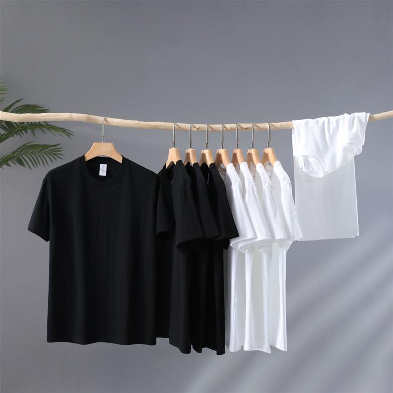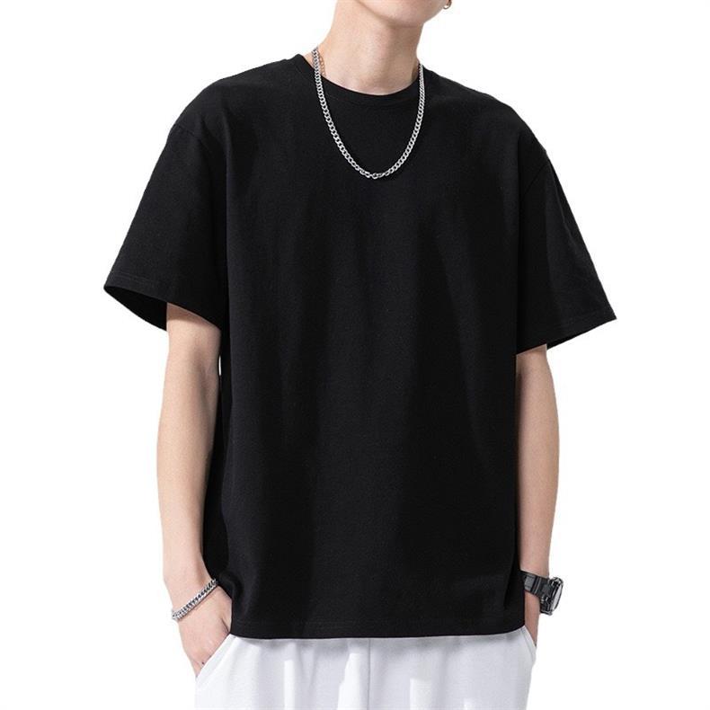 180g 일본 무거운 유행 브랜드 짧은 소매 티셔츠 남성과 여성을위한 느슨한 크루 넥 솔리드 컬러베이스 셔츠 탑 재고 짧은 티셔츠