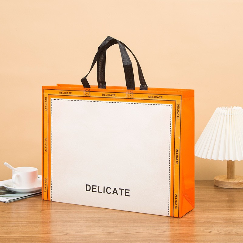 • 텍스트가 있는 델 오렌지 프레임 [50개 묶음으로 주문하세요], 중간 크기: 42*32*10, 부직포 코팅