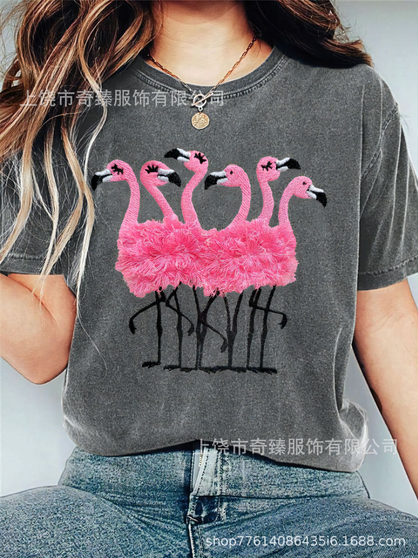 2024 새로운 AliExpress 국경 대외 무역 여름 여성 스타 인쇄 3D 디지털 인쇄 여성 라운드 넥 티셔츠
