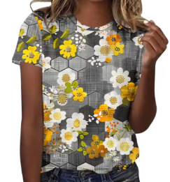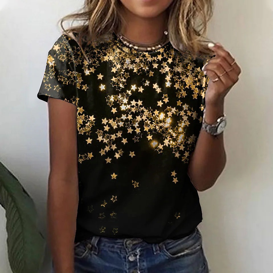 2024 새로운 AliExpress 국경 대외 무역 여름 여성 스타 인쇄 3D 디지털 인쇄 여성 라운드 넥 티셔츠스토어 가기