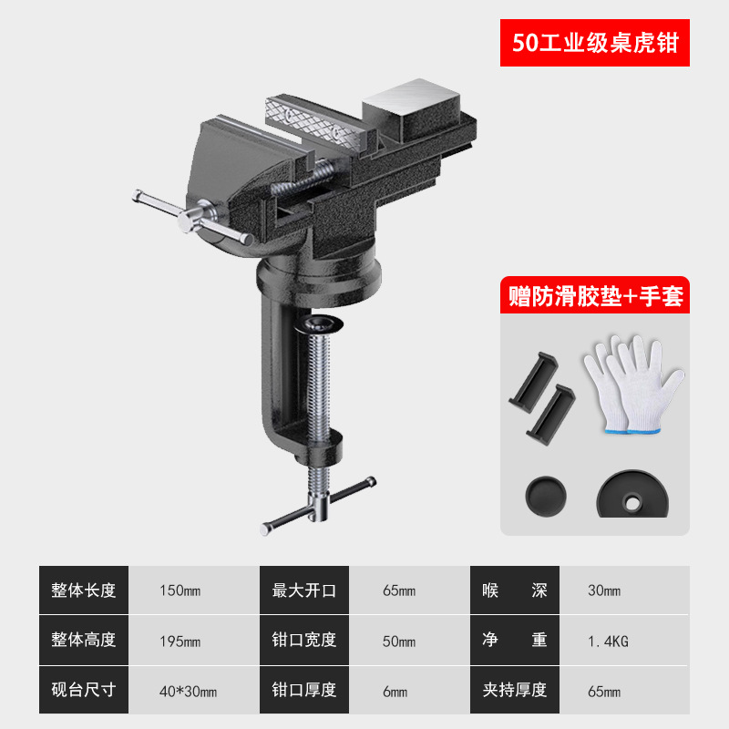 • 유형 50 - 산업용 등급 테이블 바이스 [미끄럼 방지 패드 + 장갑 포함]