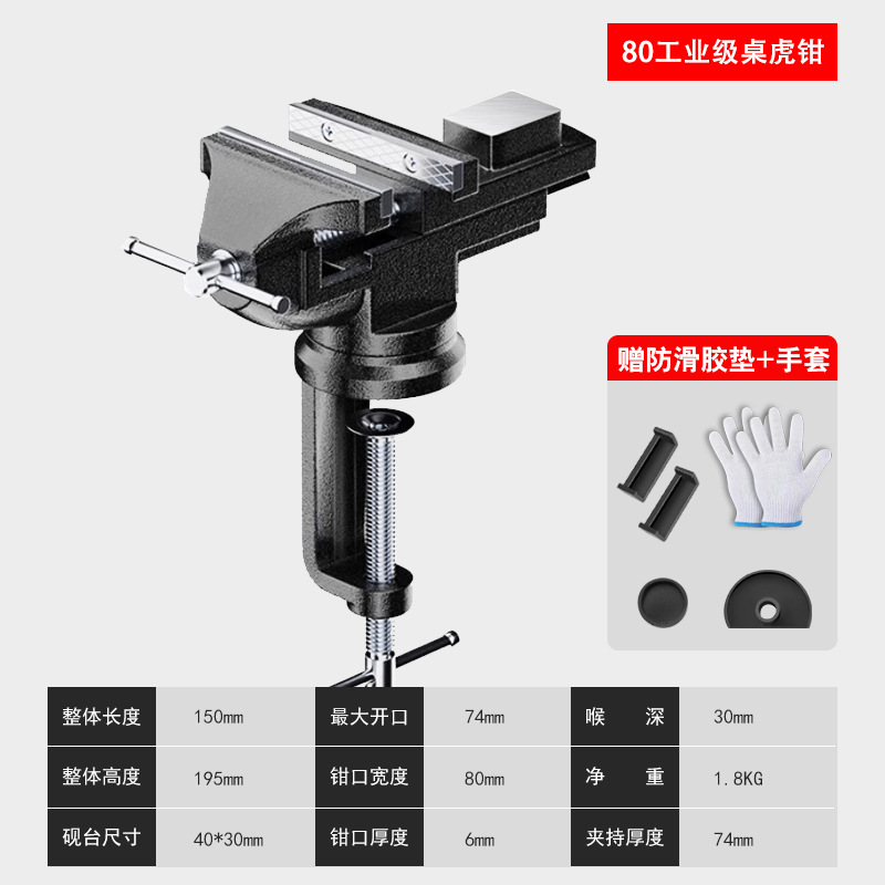• 80형 - 산업용 테이블 바이스 [미끄럼 방지 패드 + 장갑 포함]