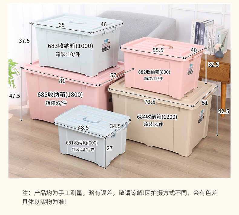 재고 공급 가방 저장 상자 기숙사 가정용 의류 저장 상자 큰 장난감 플라스틱 상자스토어 가기