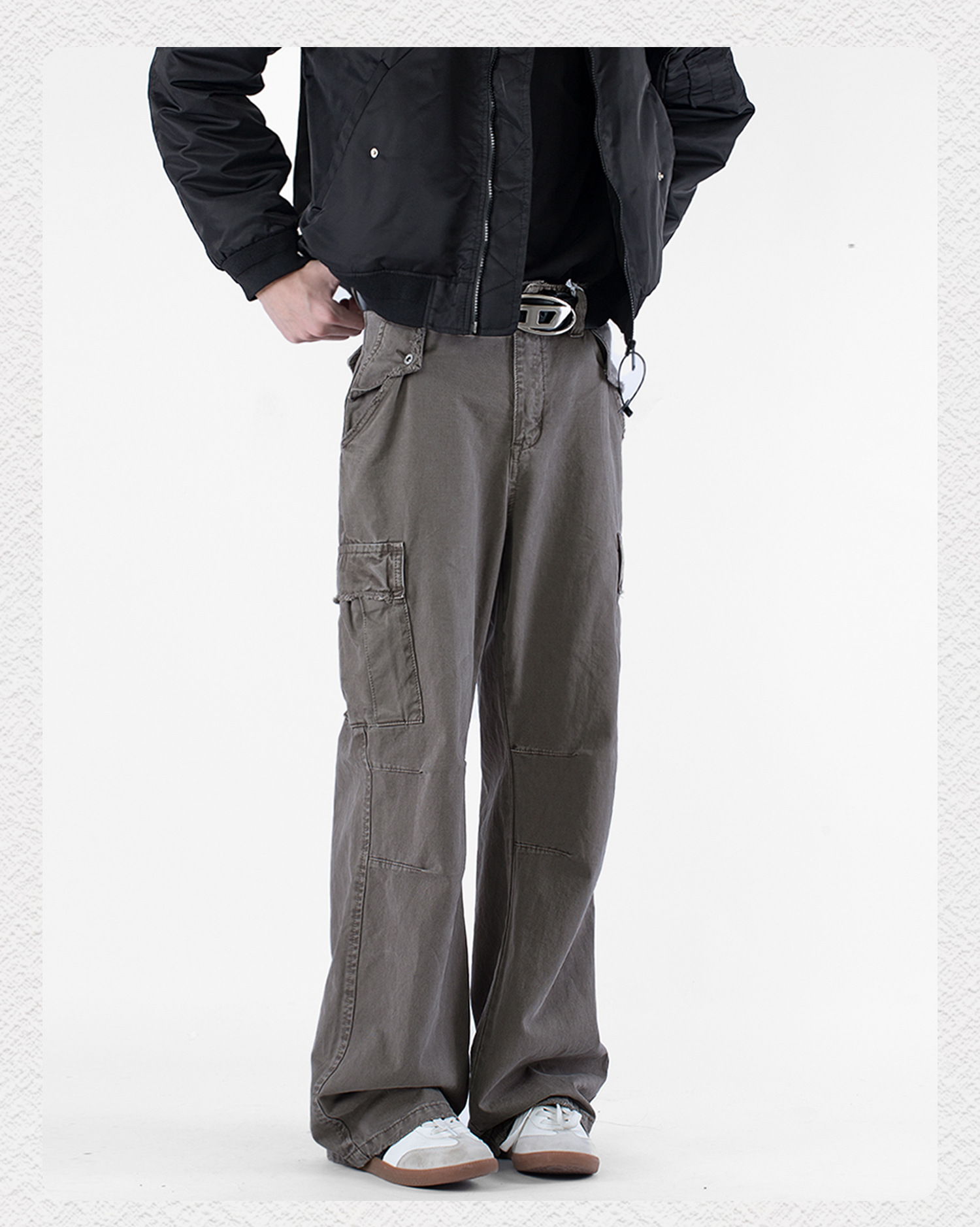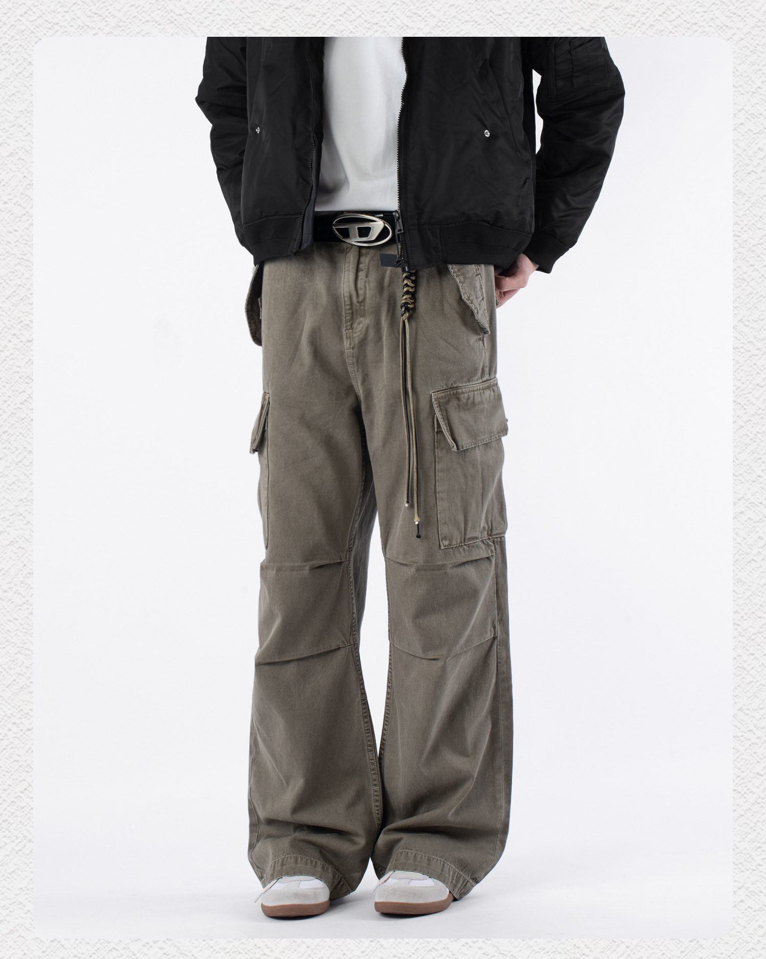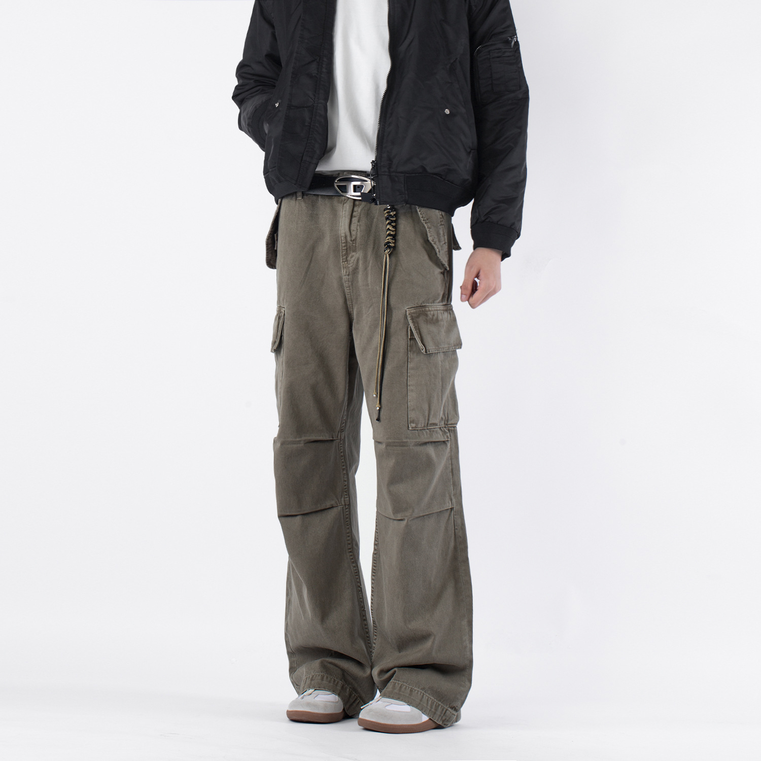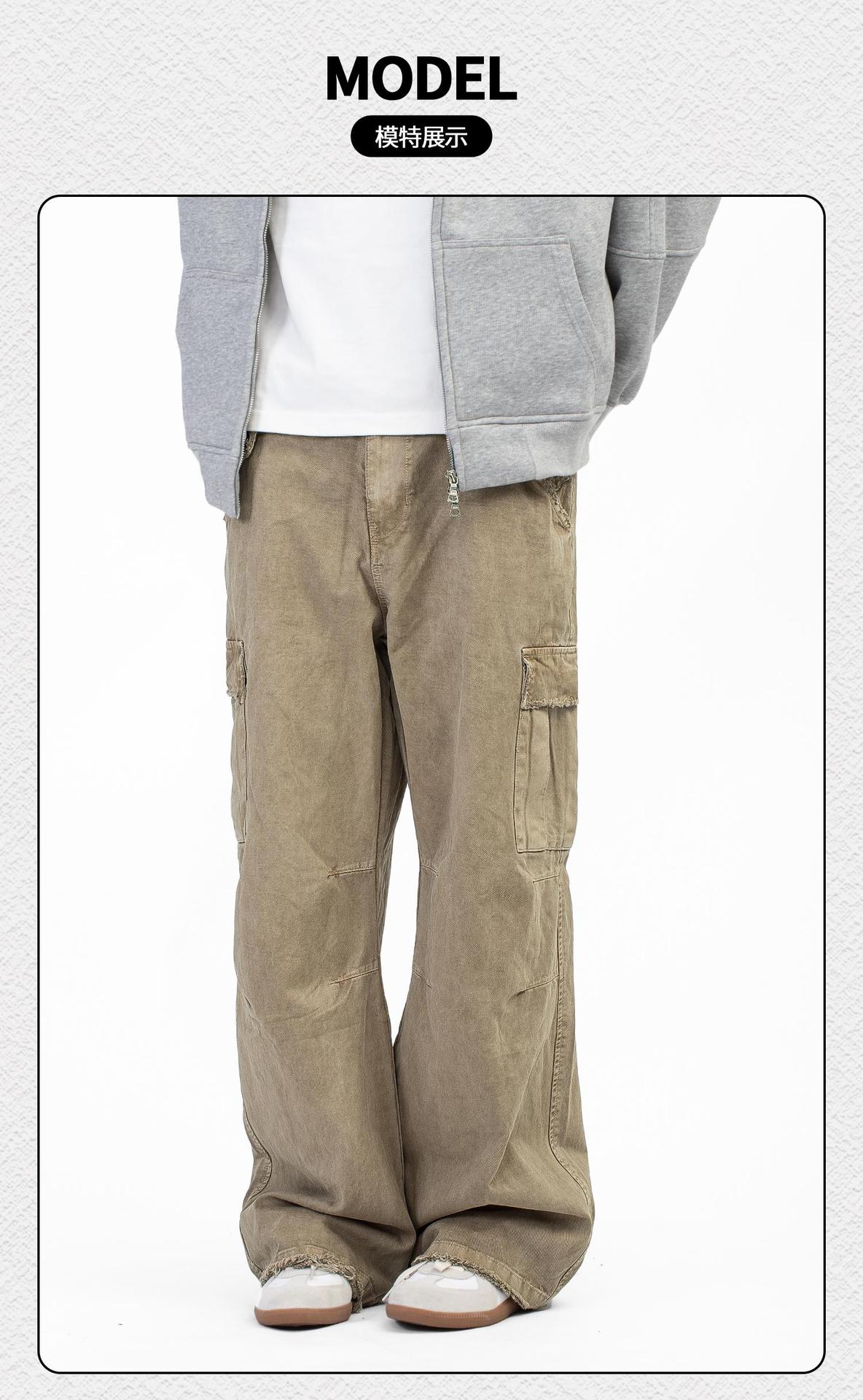 CSMY 카키 레트로 오버올 남성용 스트레이트 와이드 팬츠 디스트레스드 워싱 디스트로이드 빈티지 일본 캐주얼 팬츠스토어 가기
