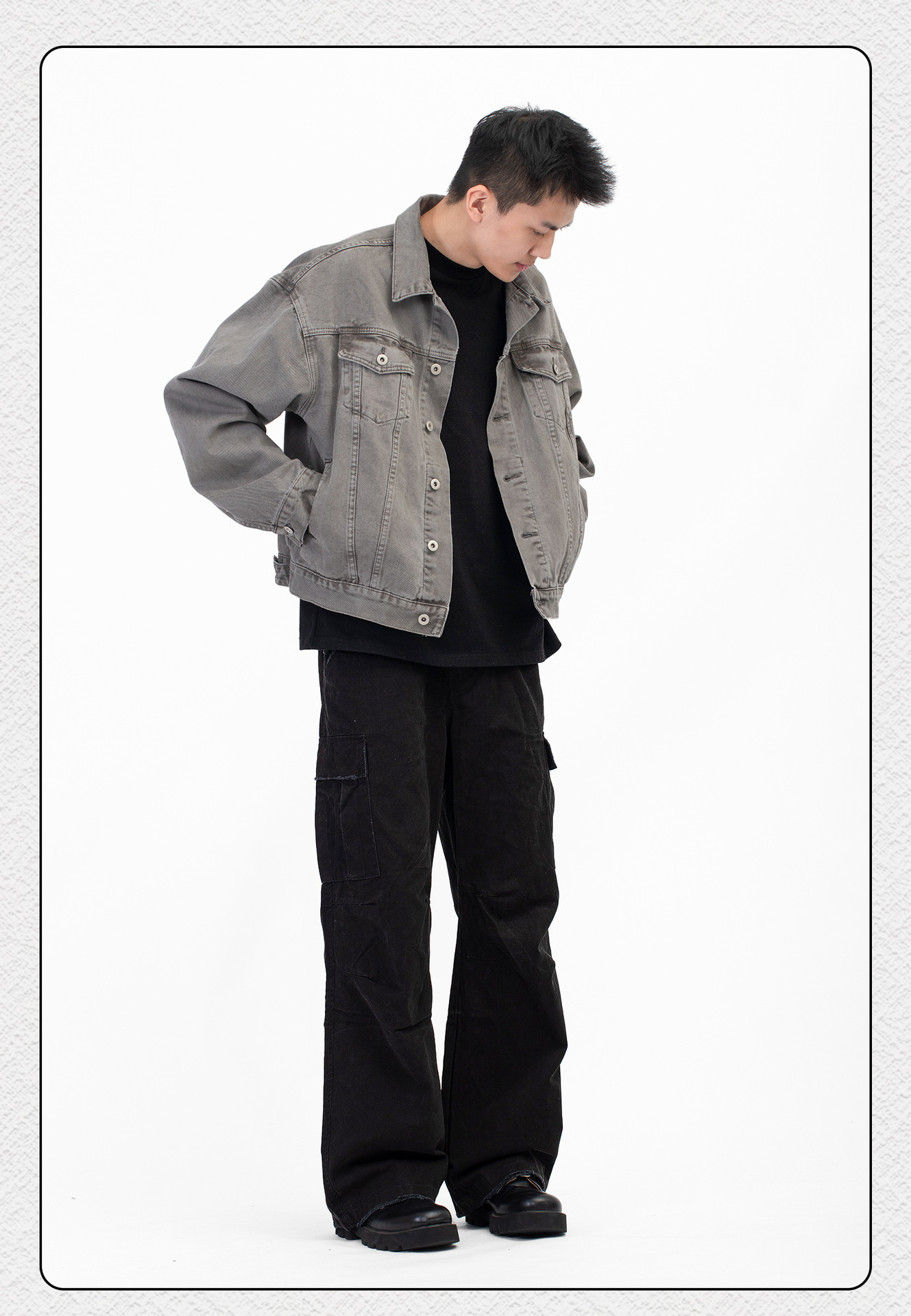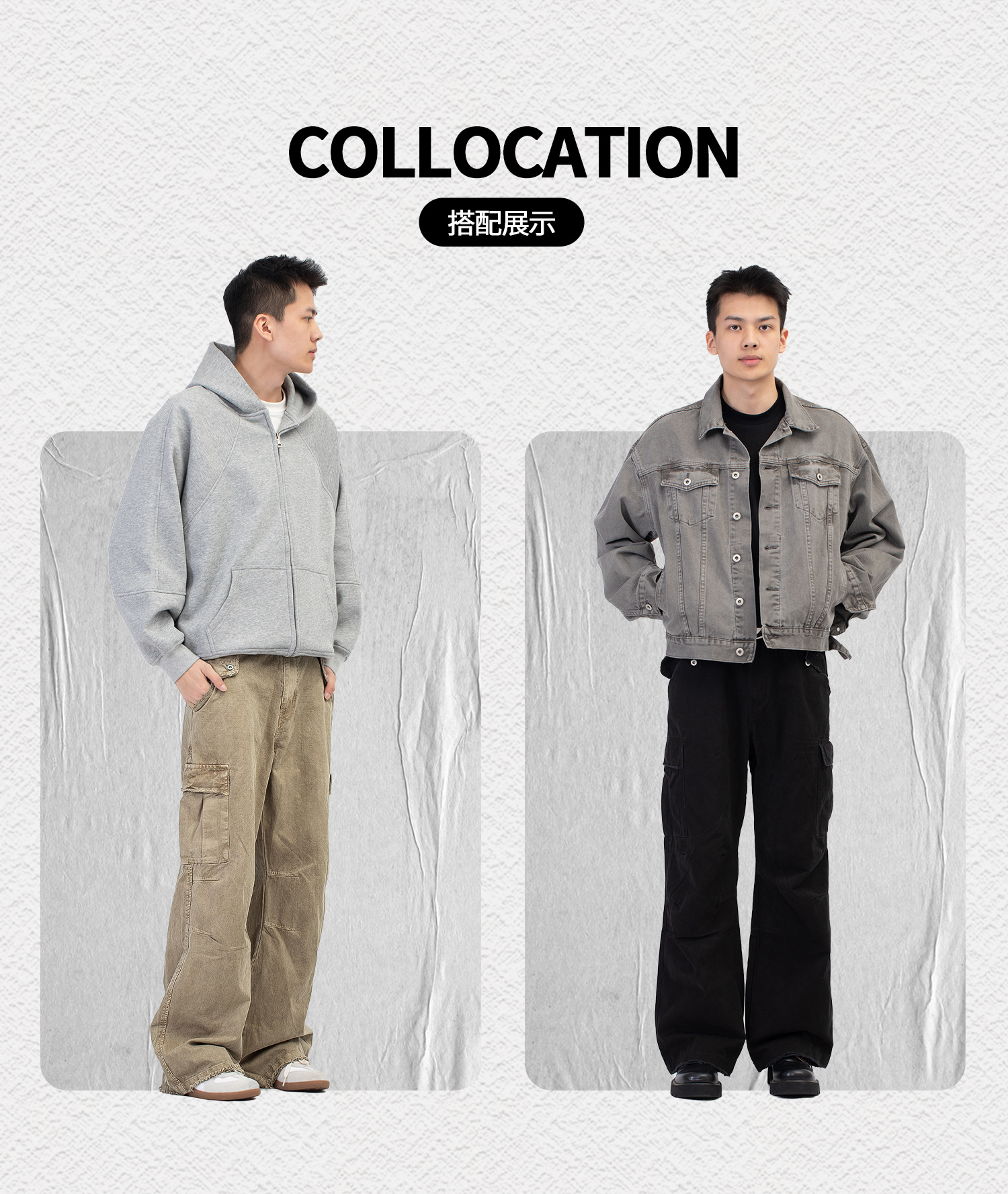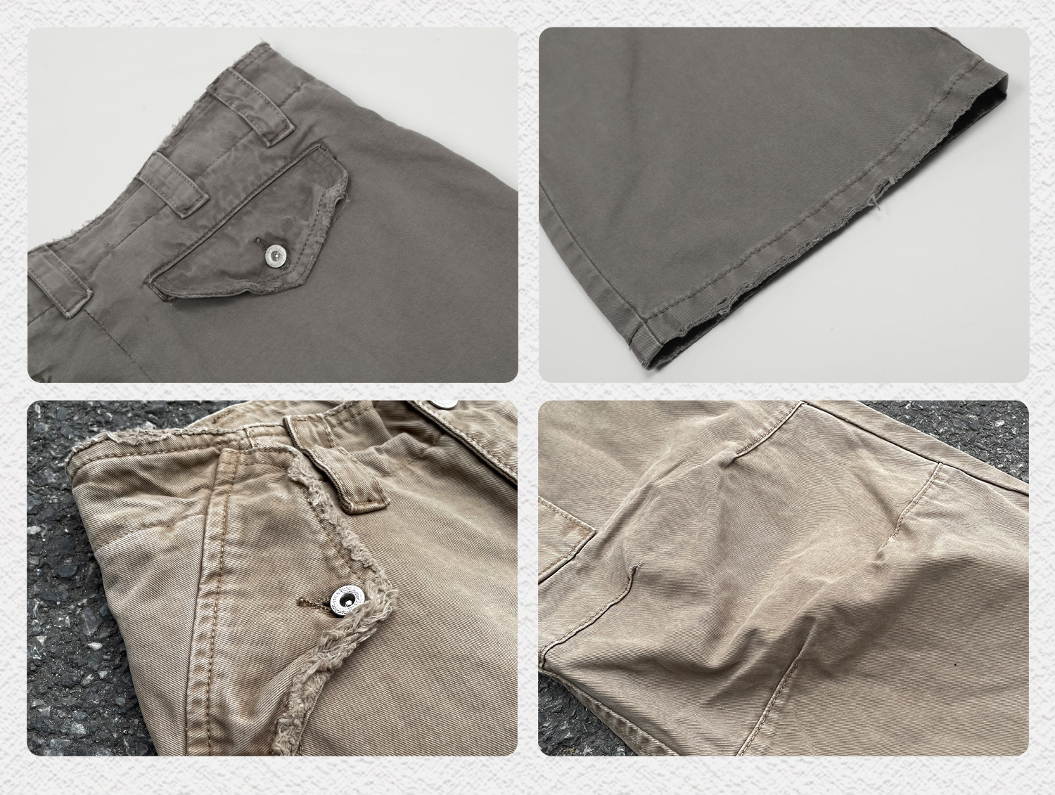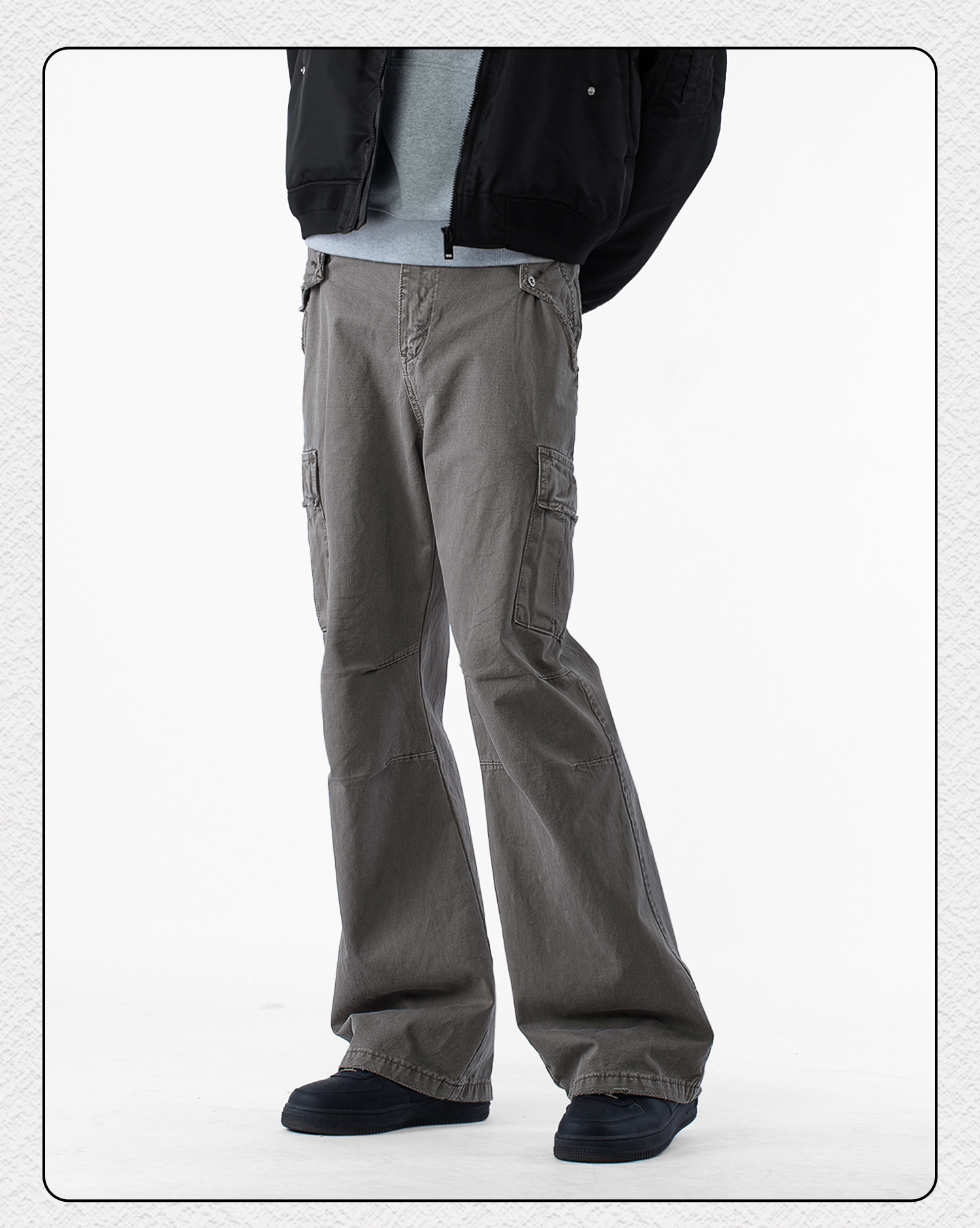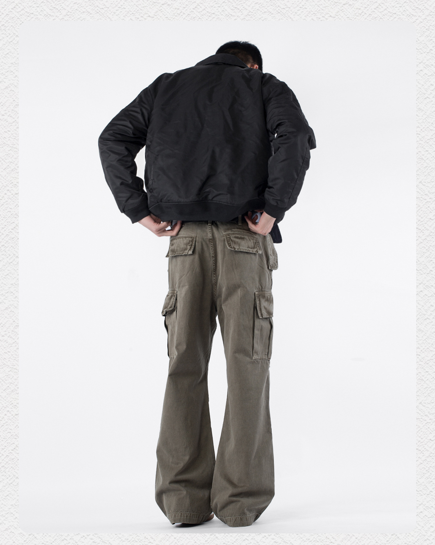 CSMY 카키 레트로 오버올 남성용 스트레이트 와이드 팬츠 디스트레스드 워싱 디스트로이드 빈티지 일본 캐주얼 팬츠스토어 가기