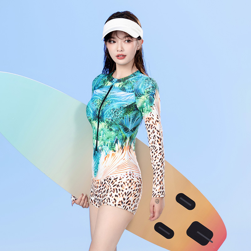 수영복 여성 원피스 보수적 인 2024 새로운 배꼽 슬리밍 온천 수영장 긴 소매 태양 보호 서핑 다이빙 세트
