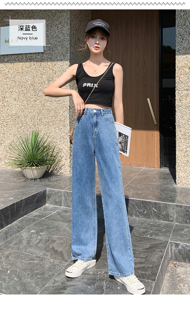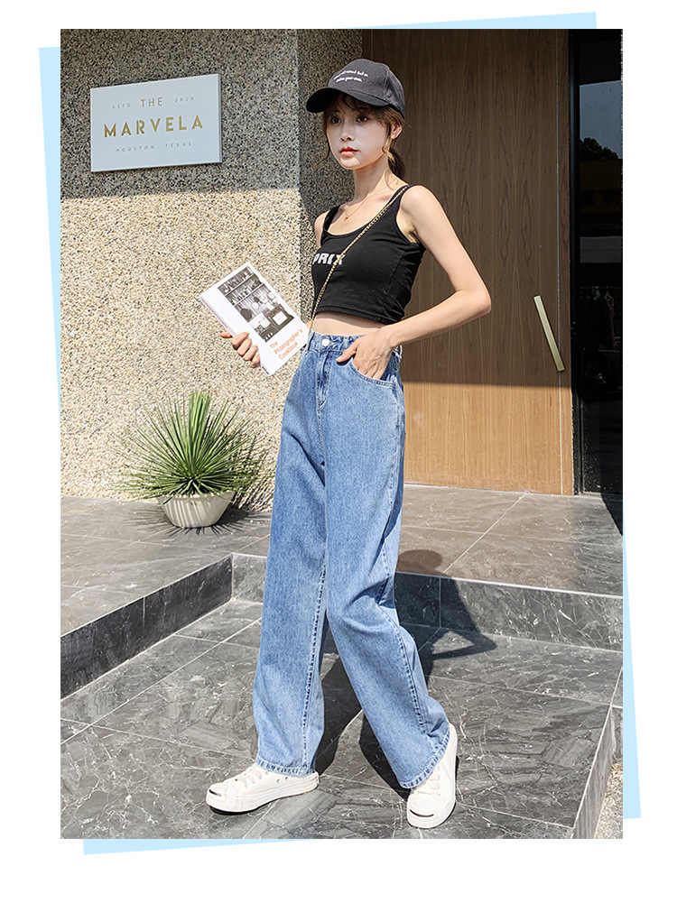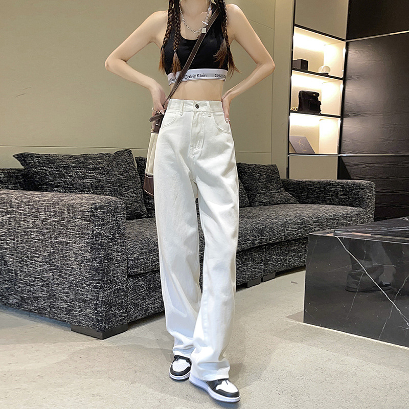 2024 새로운 여성 청바지 중간 허리 스트레이트 느슨한 탄성 경량 배 수축 유행 레저 기질 청바지스토어 가기