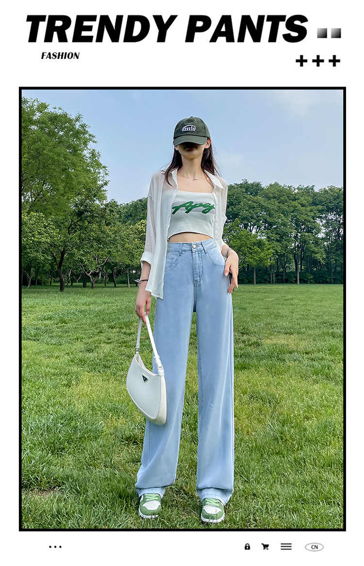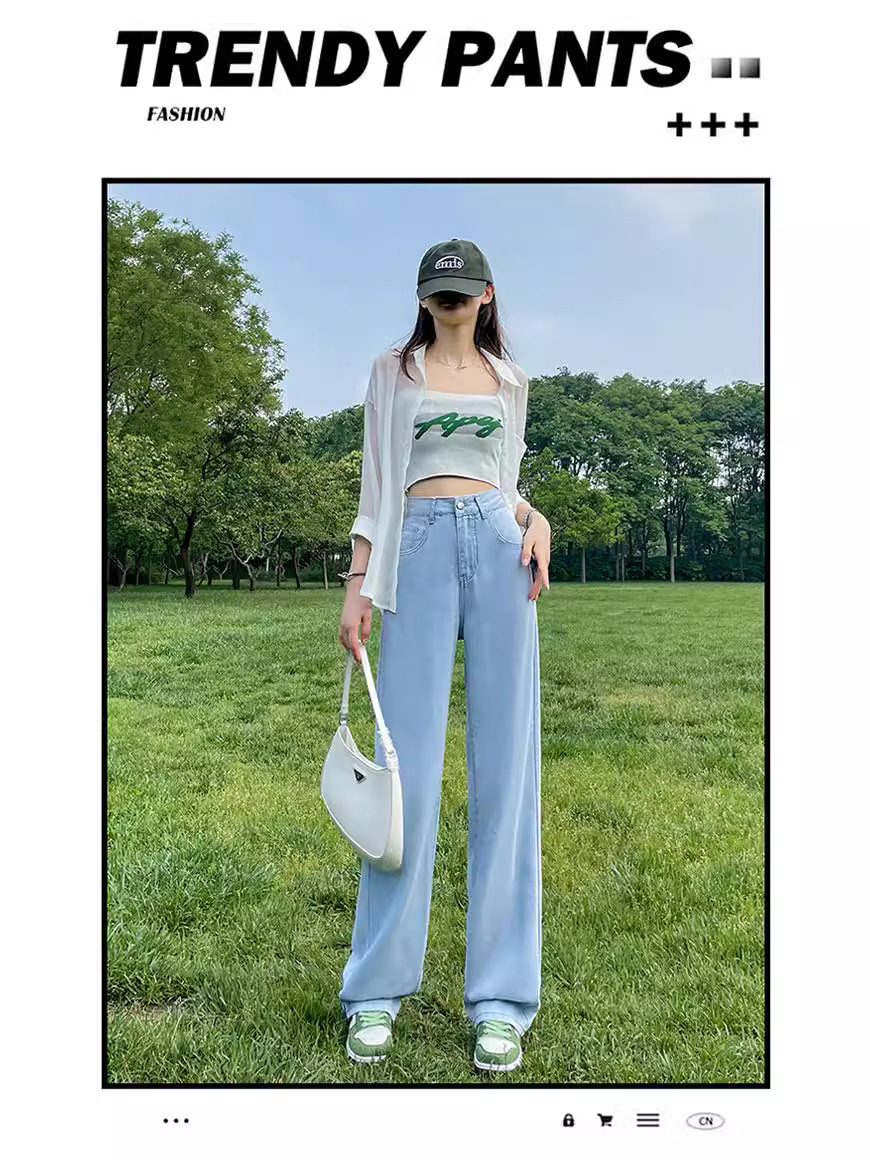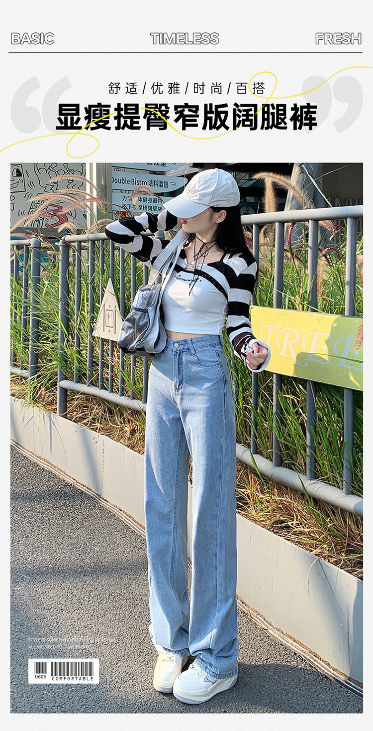 2024 새로운 여성 청바지 중간 허리 스트레이트 느슨한 탄성 경량 배 수축 유행 레저 기질 청바지