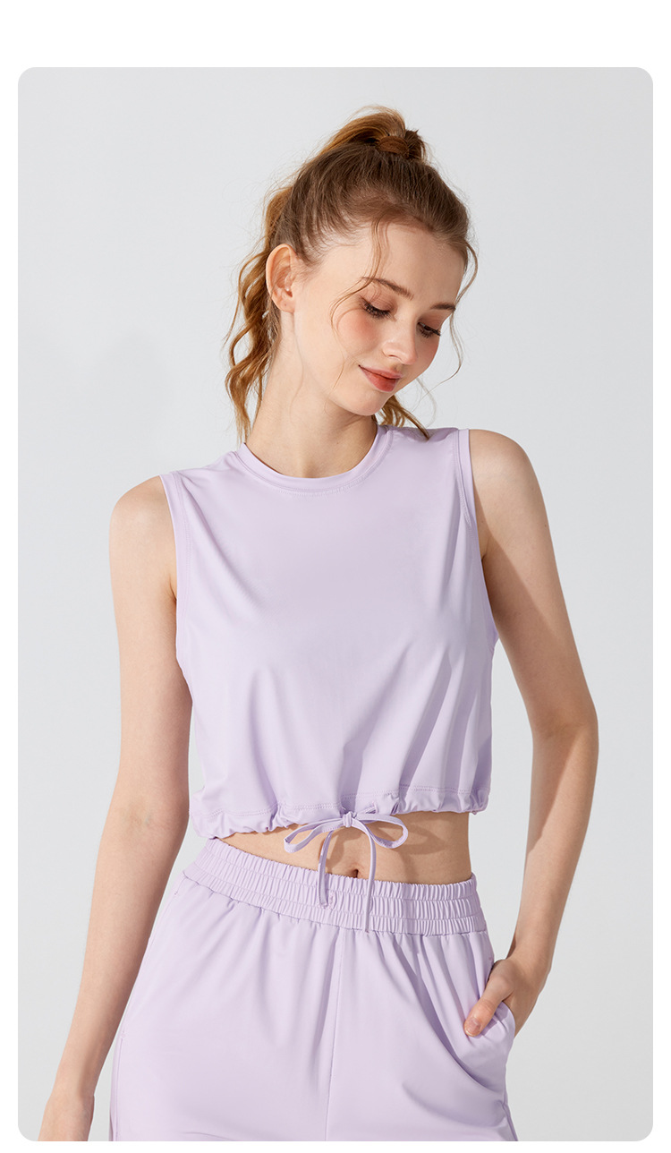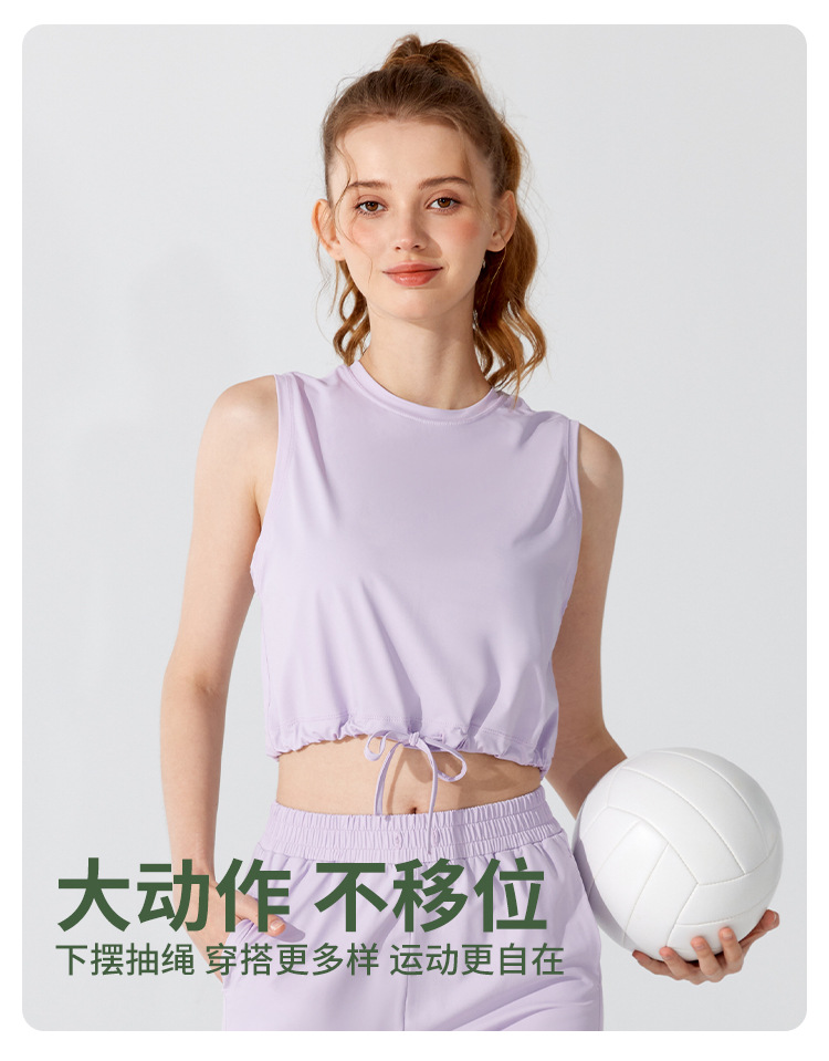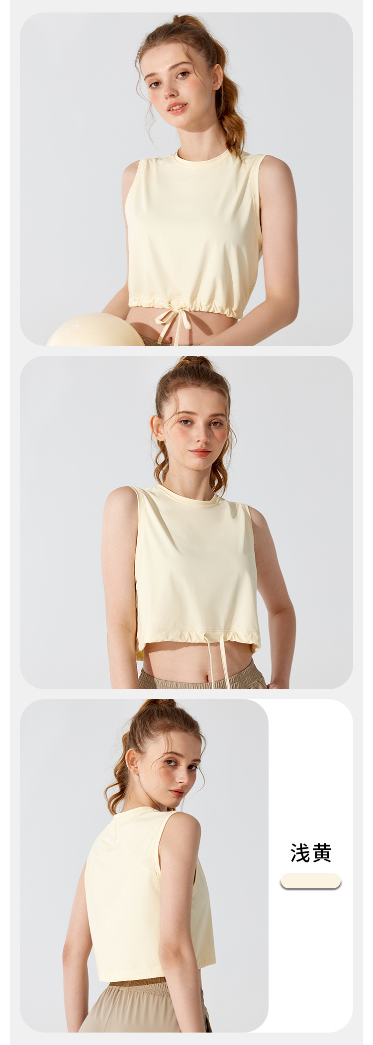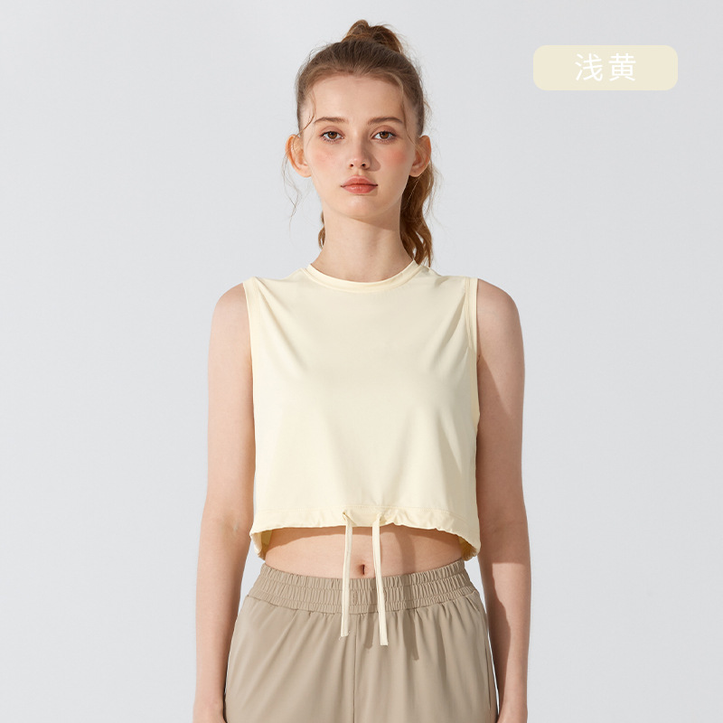 여름 시원한 오리지널 원사 태양 보호 스포츠 민소매 조끼 조절 가능한 drawstring hem 달리기 피트니스 탑 요가 옷