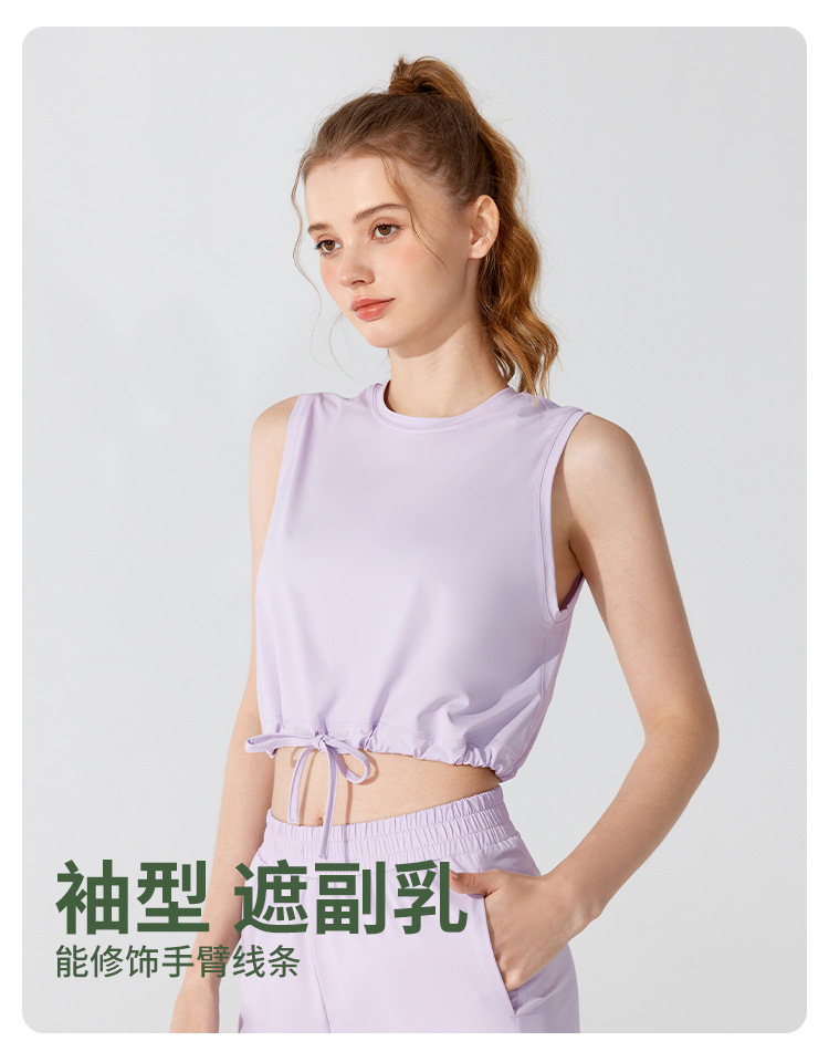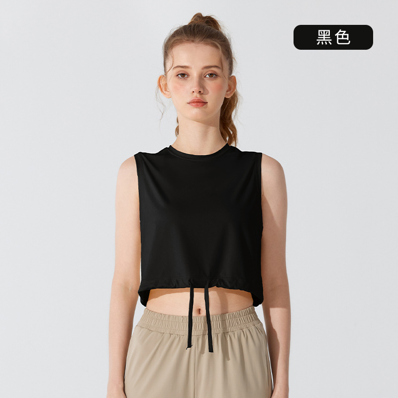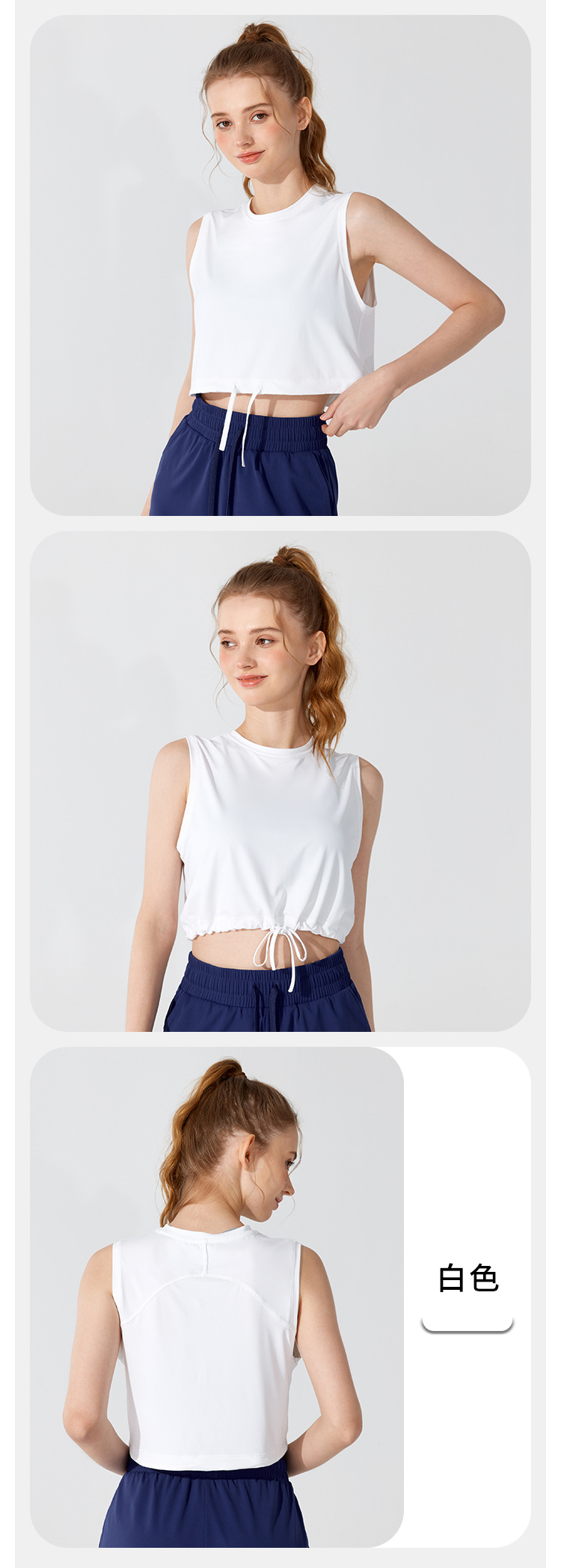 여름 시원한 오리지널 원사 태양 보호 스포츠 민소매 조끼 조절 가능한 drawstring hem 달리기 피트니스 탑 요가 옷스토어 가기