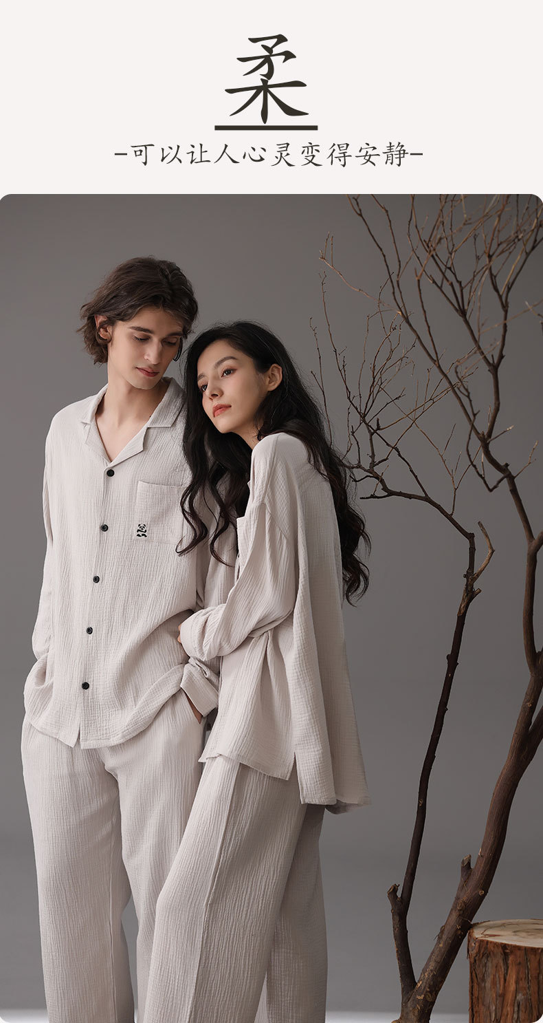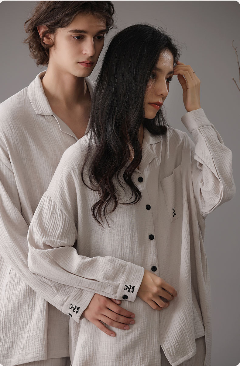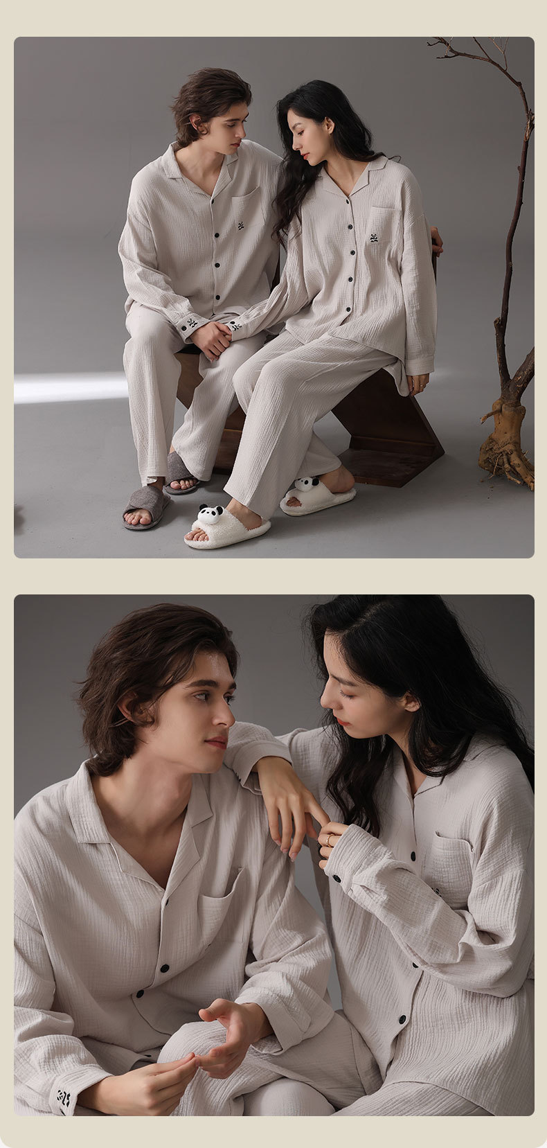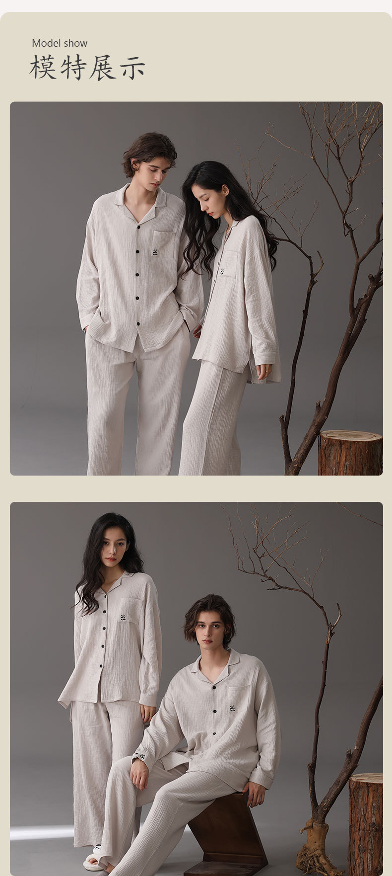 A급 이중 거즈 커플 잠옷 면 거즈 가디건 남녀 홈웨어 세트 순면 커플 스타일 외출복 가능스토어 가기