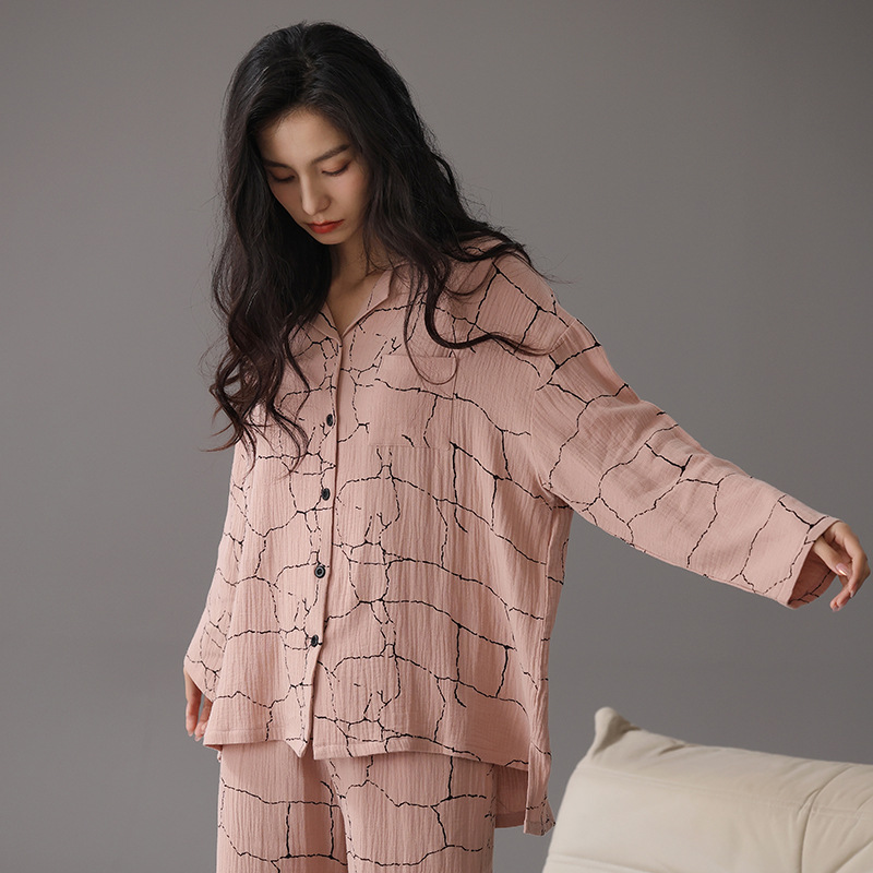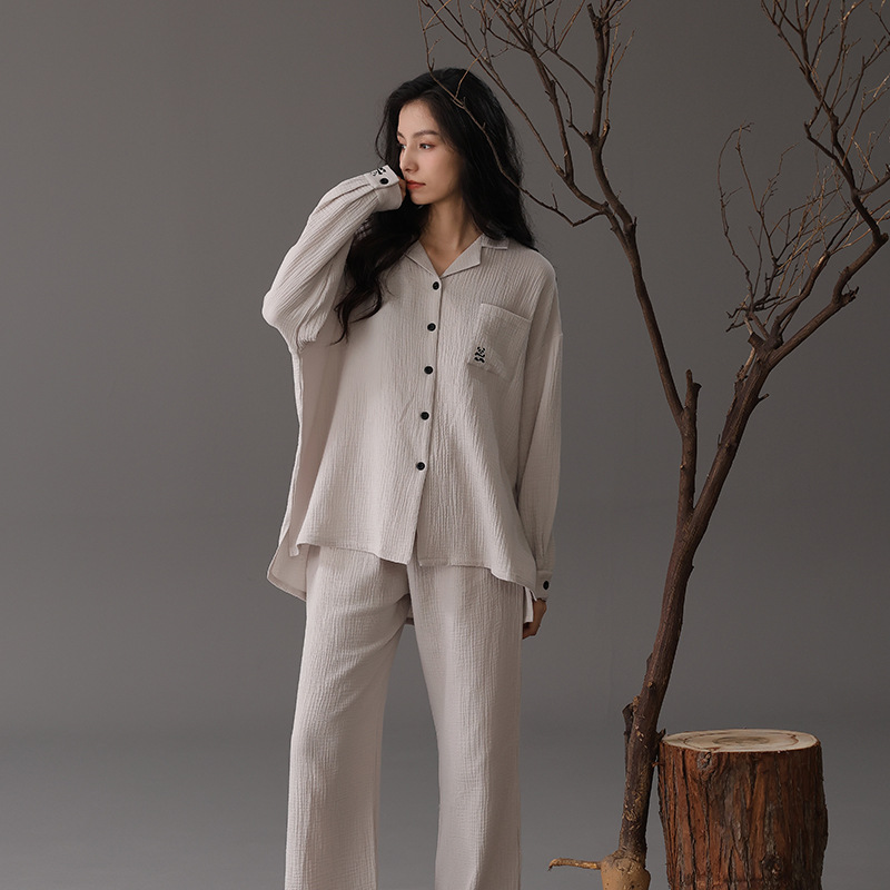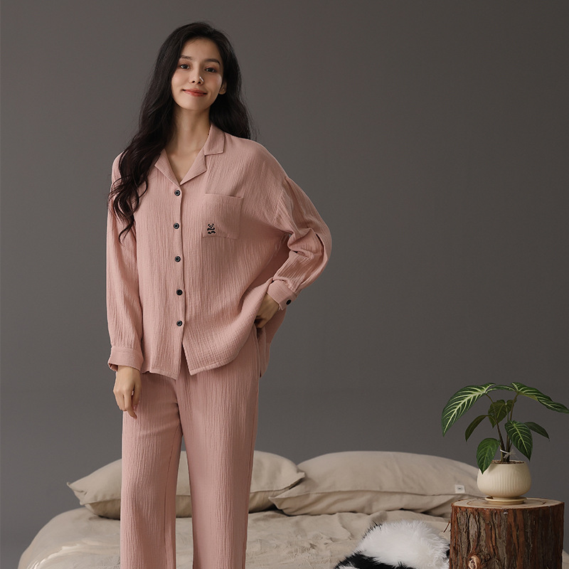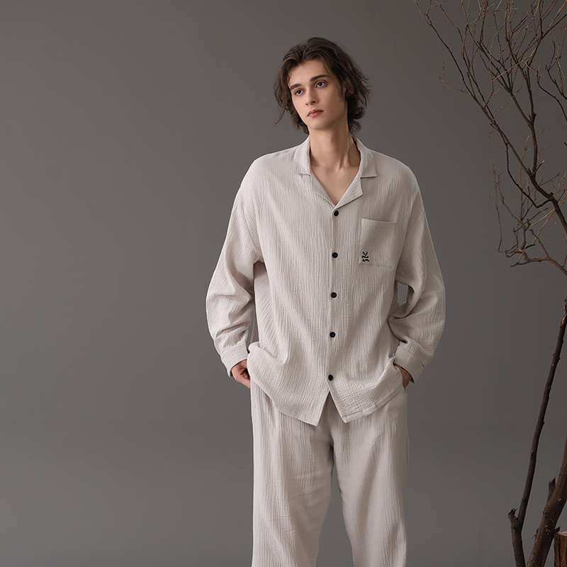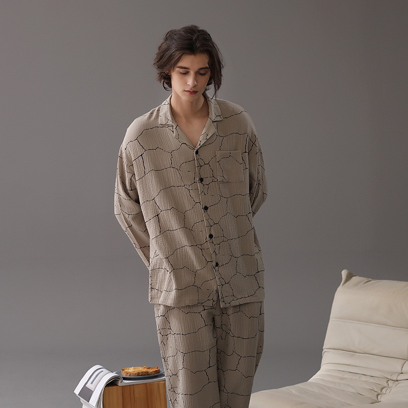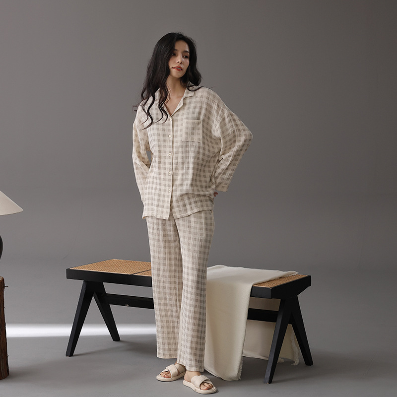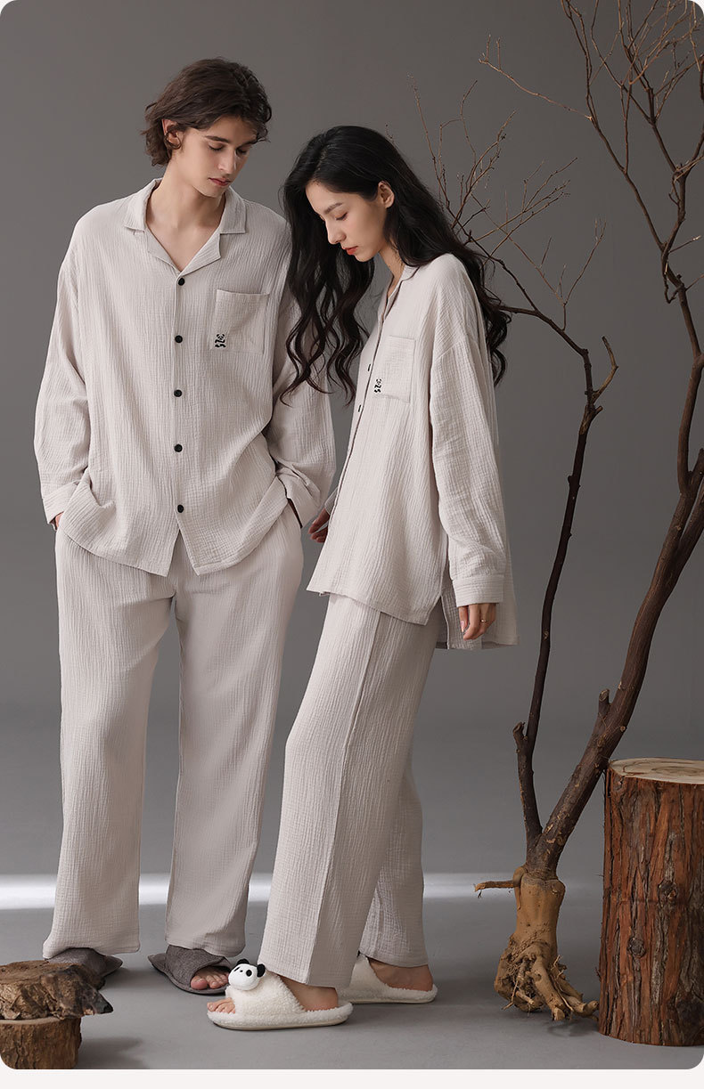 A급 이중 거즈 커플 잠옷 면 거즈 가디건 남녀 홈웨어 세트 순면 커플 스타일 외출복 가능스토어 가기