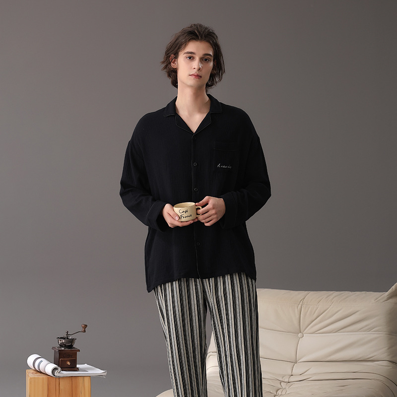 A급 이중 거즈 커플 잠옷 면 거즈 가디건 남녀 홈웨어 세트 순면 커플 스타일 외출복 가능
