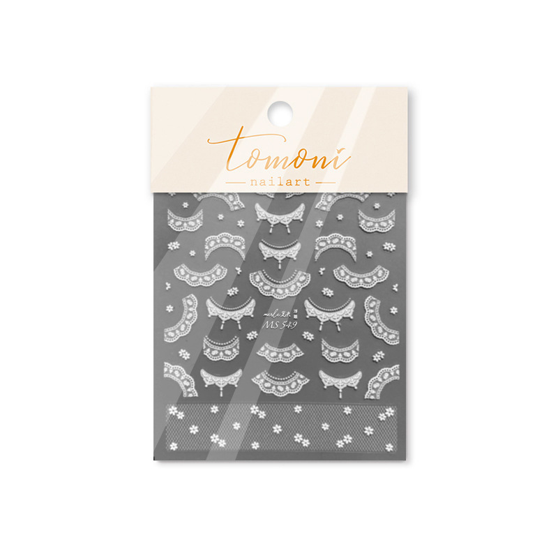 Tomoni 네일 스티커 3 차원 느슨한 협력 일본 복고풍 네일 스티커 도매 흰색 레이스 MS549스토어 가기