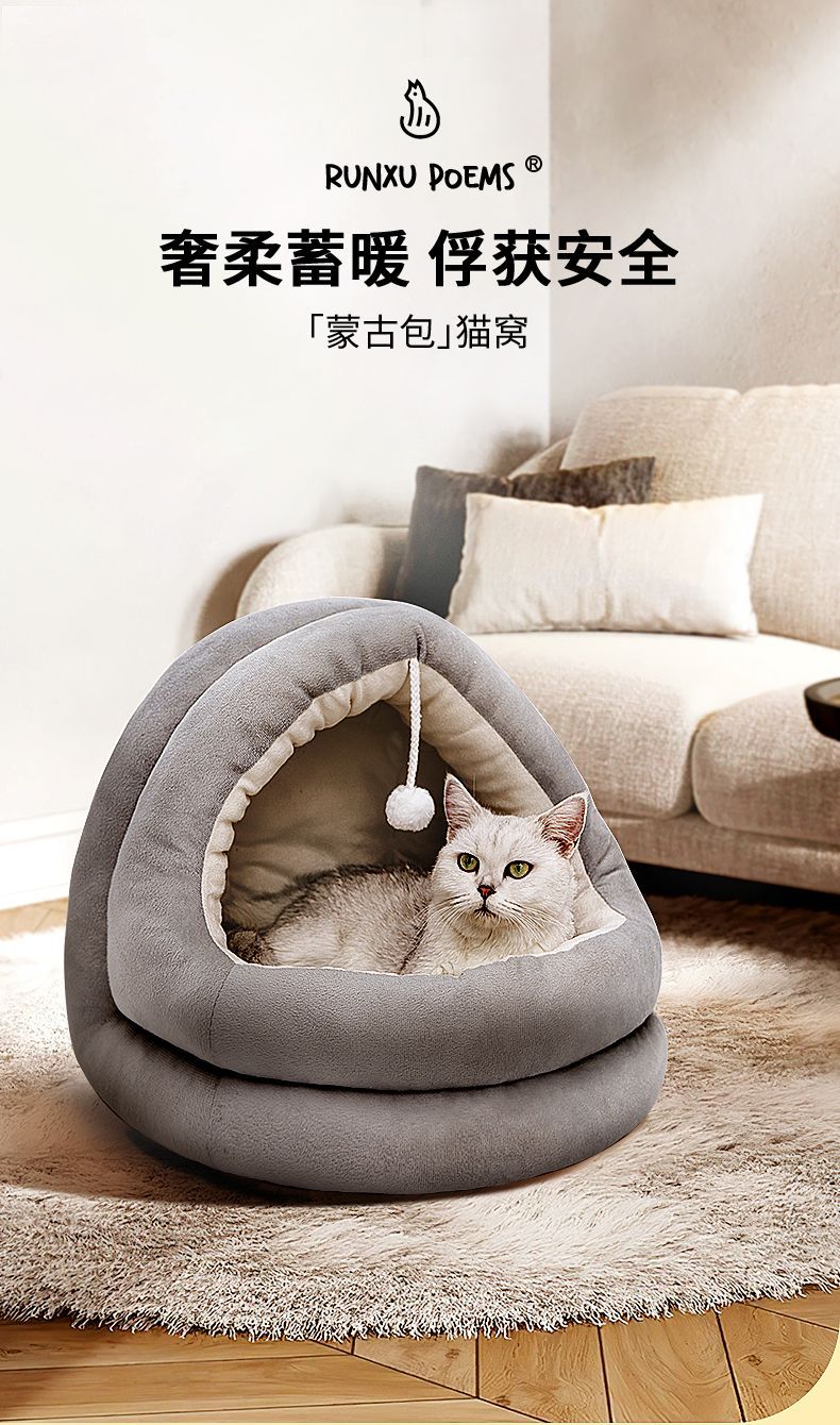 고양이 둥지 겨울 따뜻한 겨울 두꺼운 고양이 집 이동식 및 빨 수있는 반 폐쇄 인터넷 유명 고양이 집 사계절 보편적 인 고양이 침대
