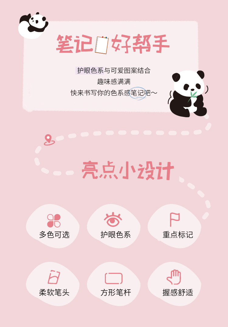 귀여운 팬더 형광등 눈 보호 색상 마커 학생 키 마커 어린이 낙서 펜 세트 도매