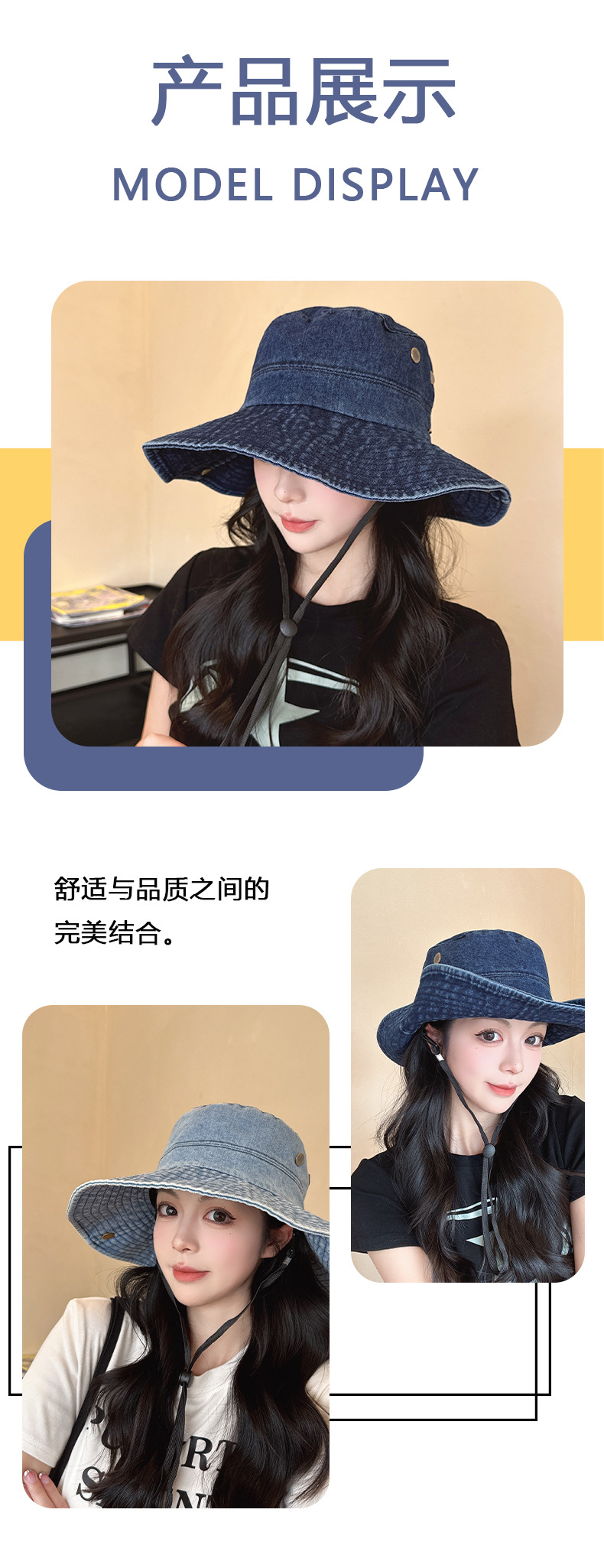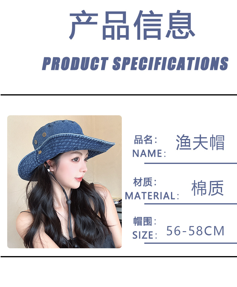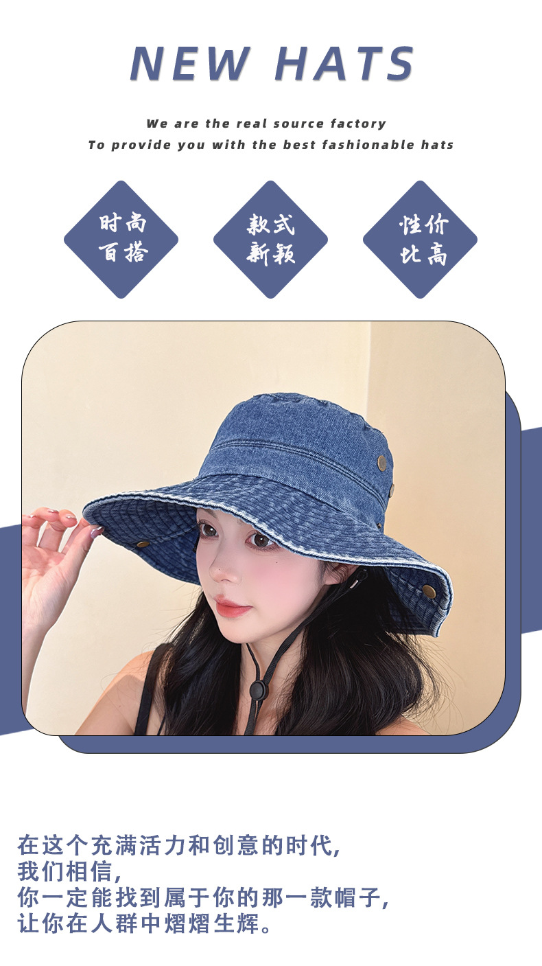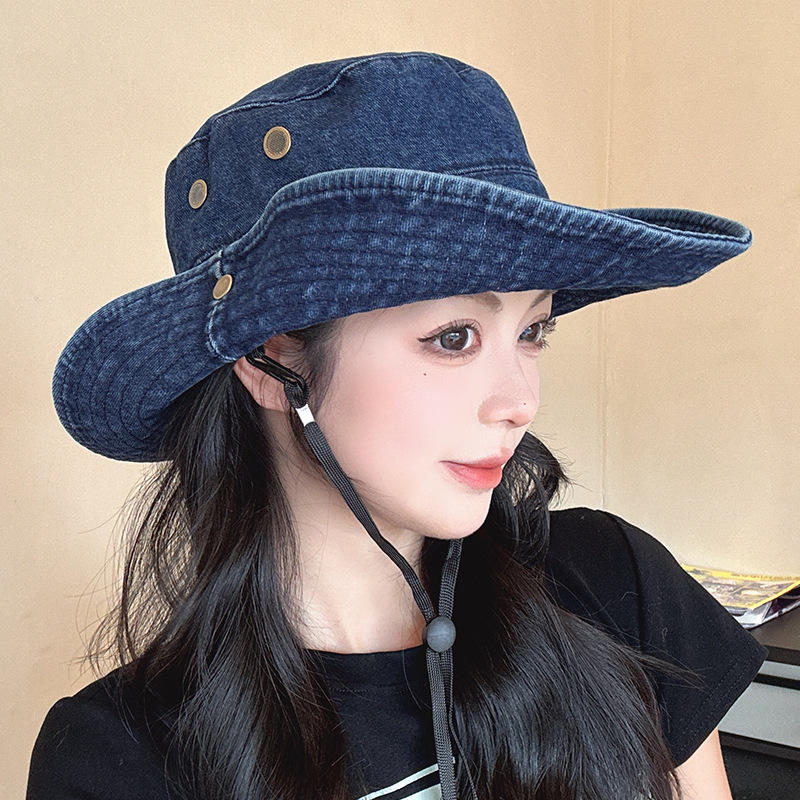 단색 데님 어부 모자 모든 경기 얼굴 모양의 작은 모자 여성 여름 큰 테두리 태양 보호 모자 복고풍 등산 모자 여성스토어 가기