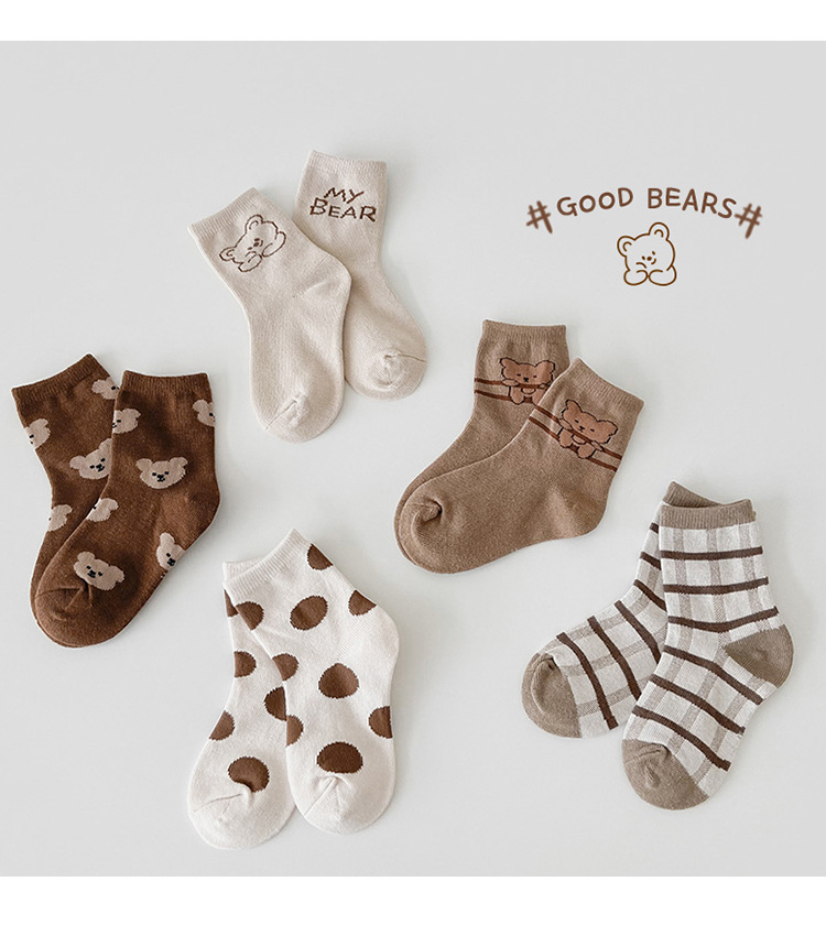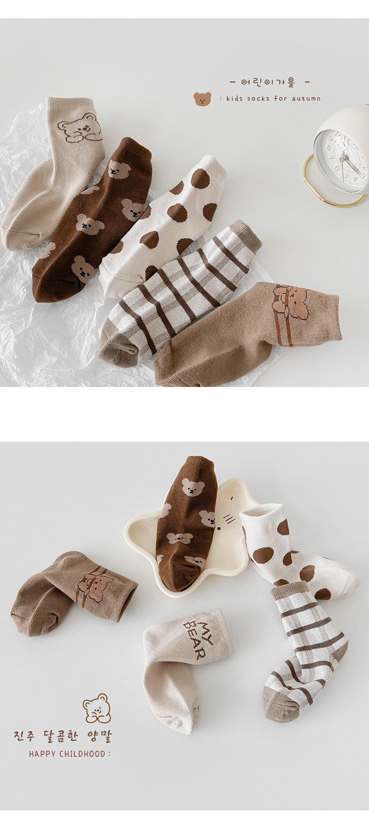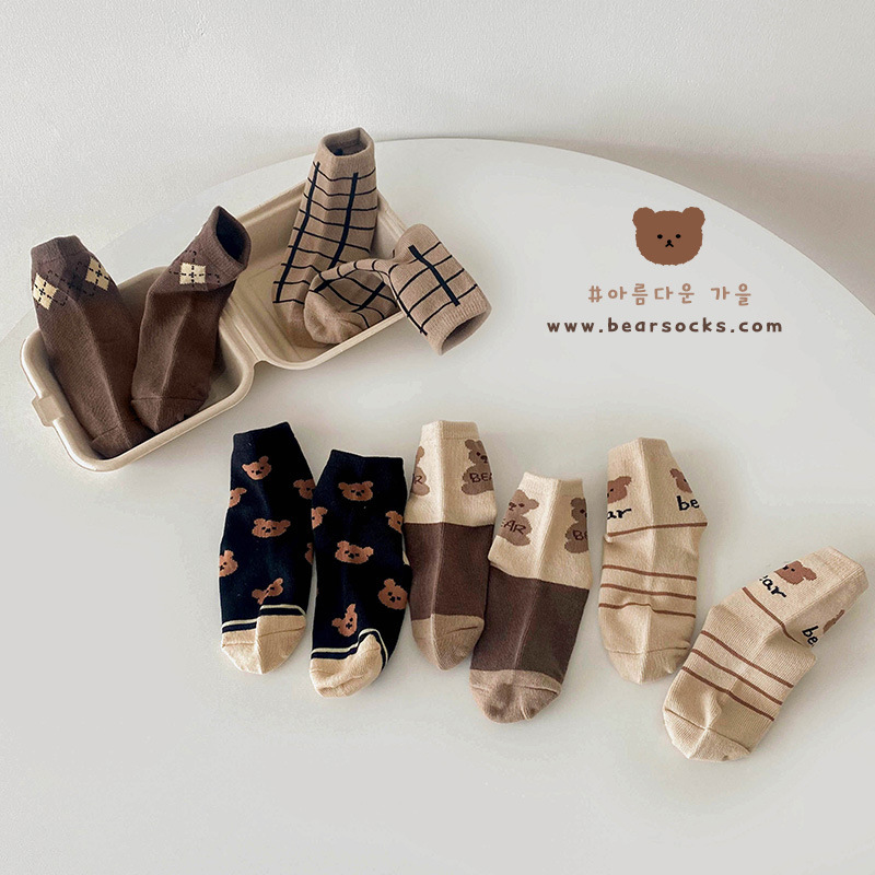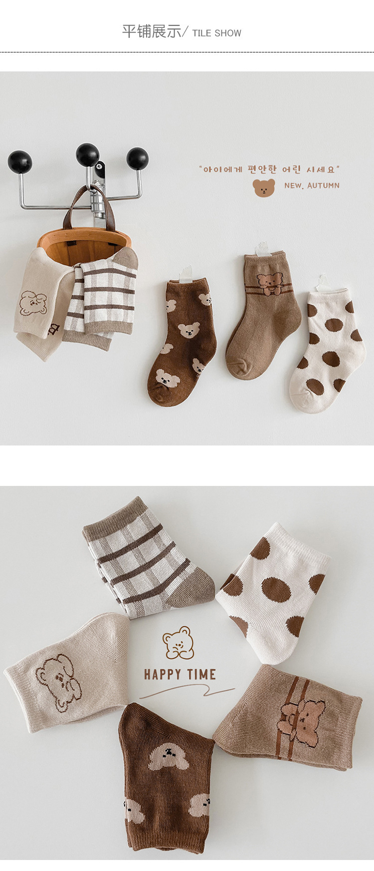 1250 어린이 양말 도매 2024 가을 곰 격자 무늬 아기 양말 폴카 도트 컬러 매칭 어린이 양말 면화스토어 가기