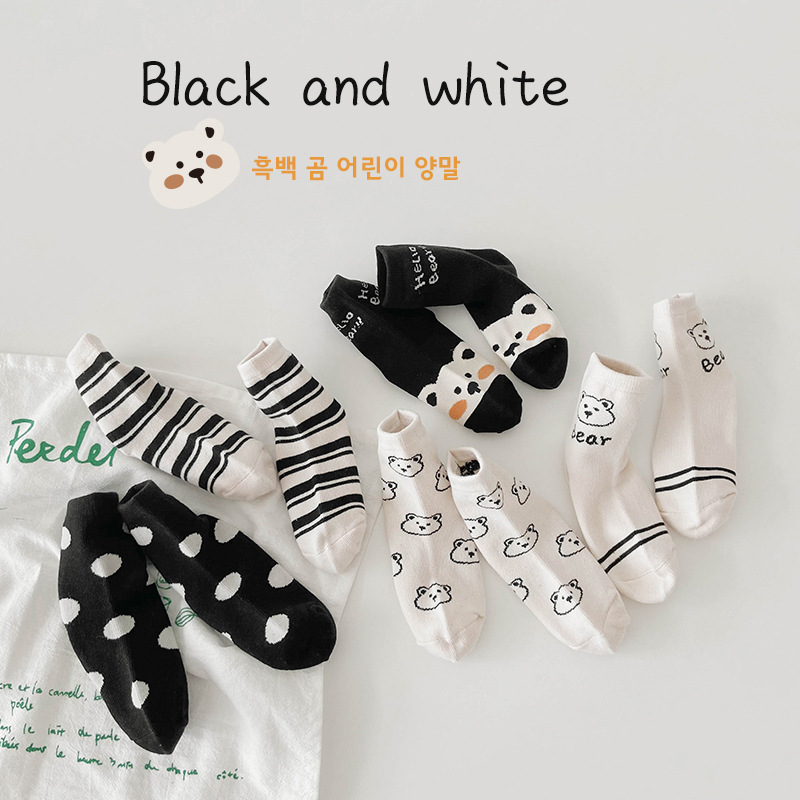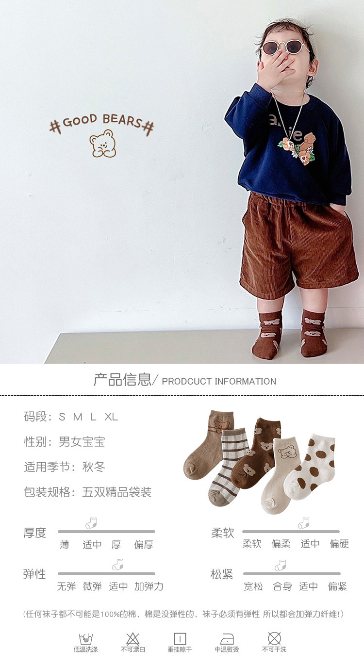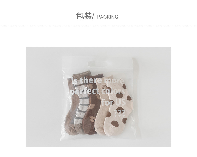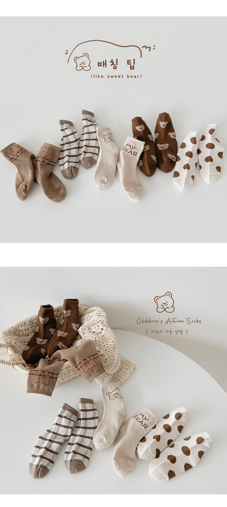 1250 어린이 양말 도매 2024 가을 곰 격자 무늬 아기 양말 폴카 도트 컬러 매칭 어린이 양말 면화스토어 가기