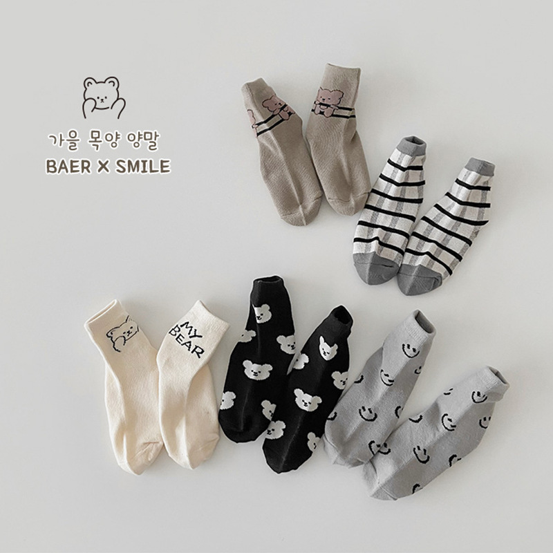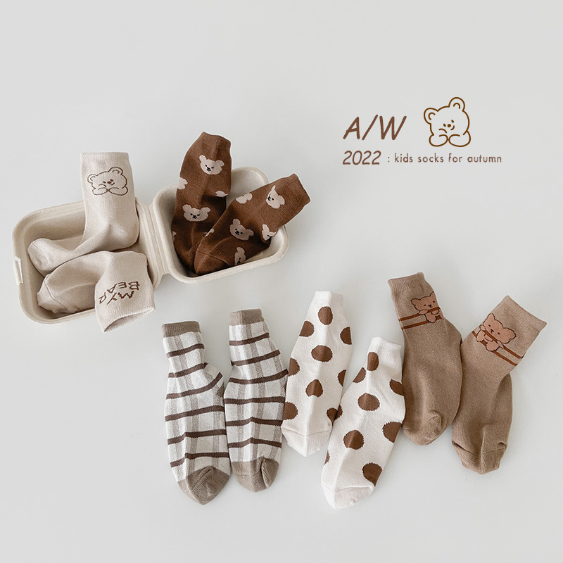 1250 어린이 양말 도매 2024 가을 곰 격자 무늬 아기 양말 폴카 도트 컬러 매칭 어린이 양말 면화
