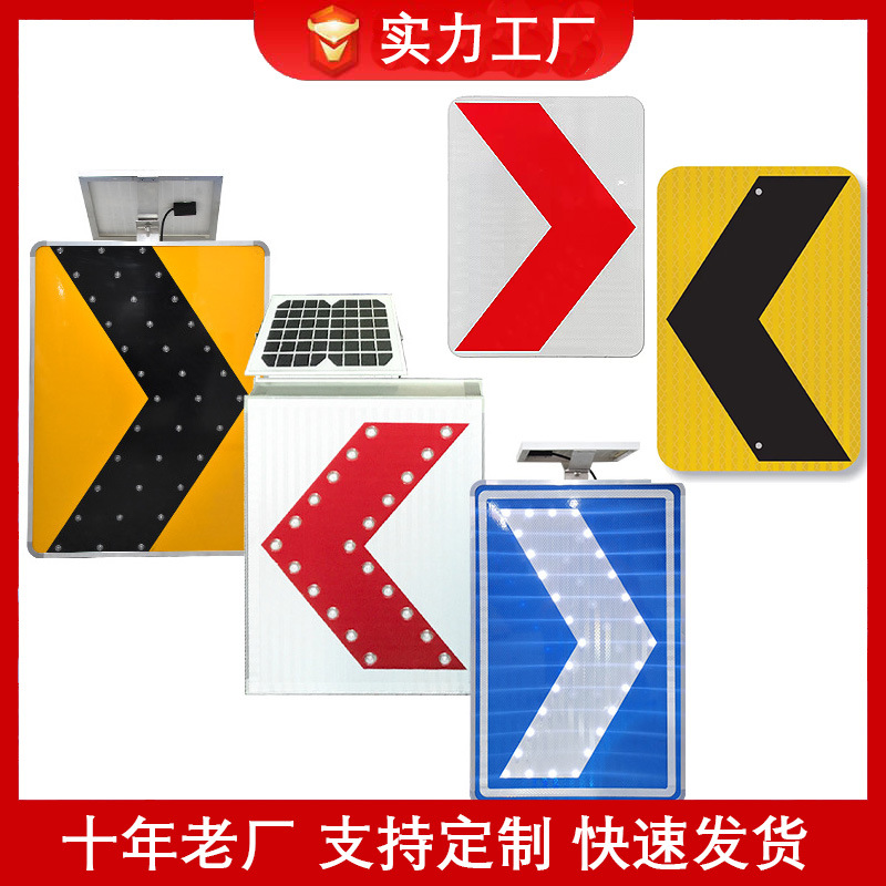 원산지 공장 알루미늄 도로 교통 표지판 LED 태양광 화살표 표지판 노란색 검은색 화살표 안내판