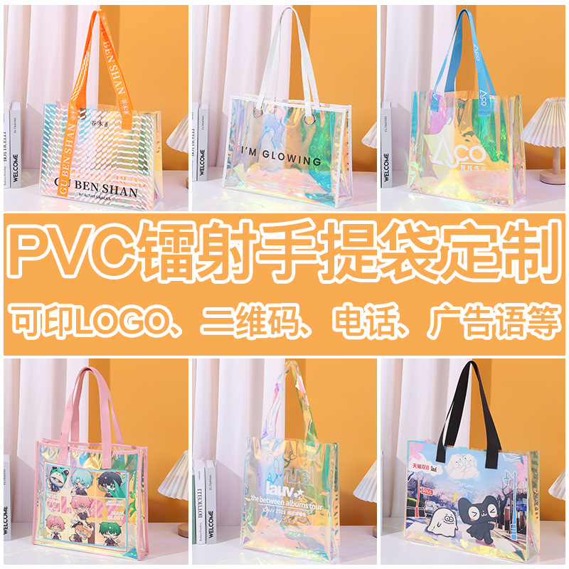 맞춤형 광고 투명 pvc 핸드백 선물 가방 의류 쇼핑 레이저 핸드백 사용자 정의