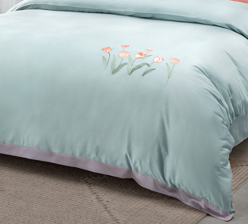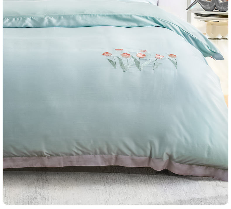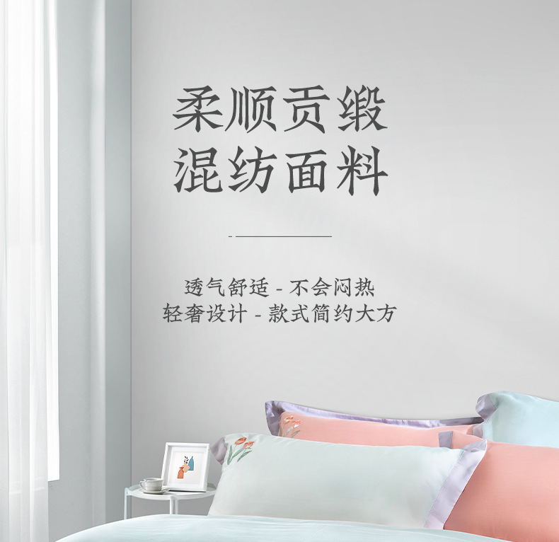 Yuanmeng Yujin Manor Zhenya 공물 새틴 침대 4 피스 세트 간단한 가벼운 고급 침대 시트 퀼트 커버 홈 고급 침구