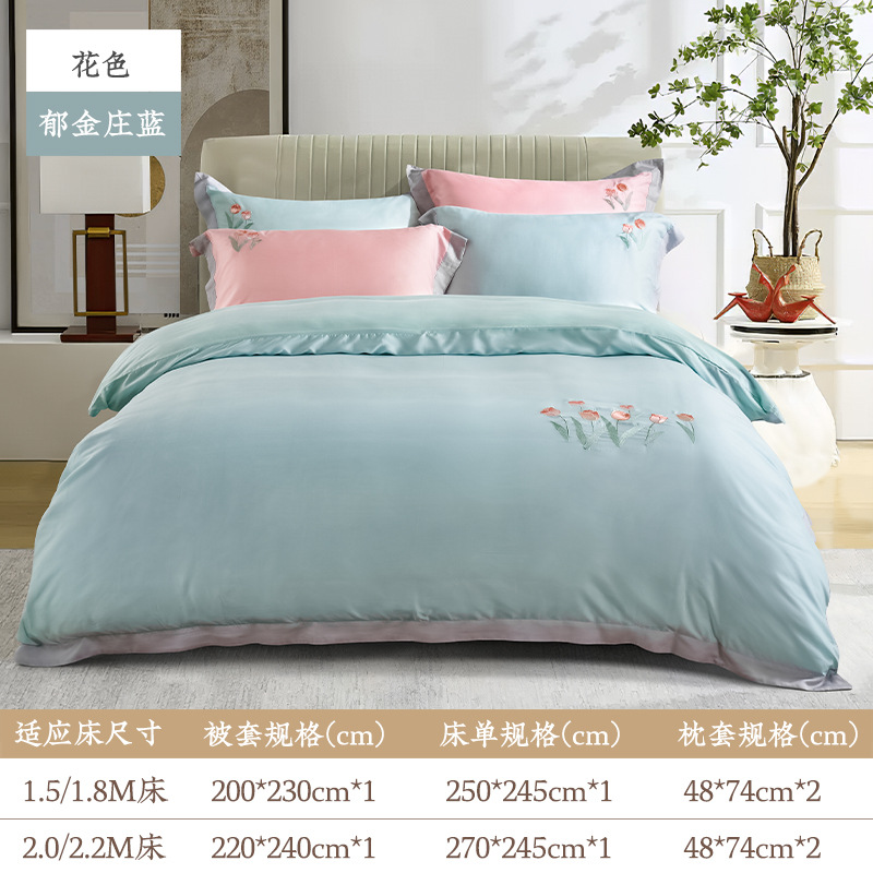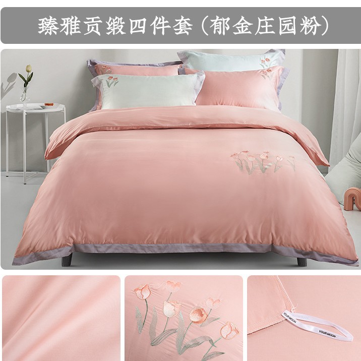 Yuanmeng Yujin Manor Zhenya 공물 새틴 침대 4 피스 세트 간단한 가벼운 고급 침대 시트 퀼트 커버 홈 고급 침구스토어 가기