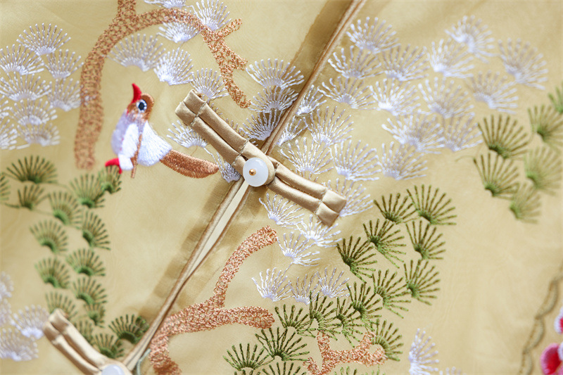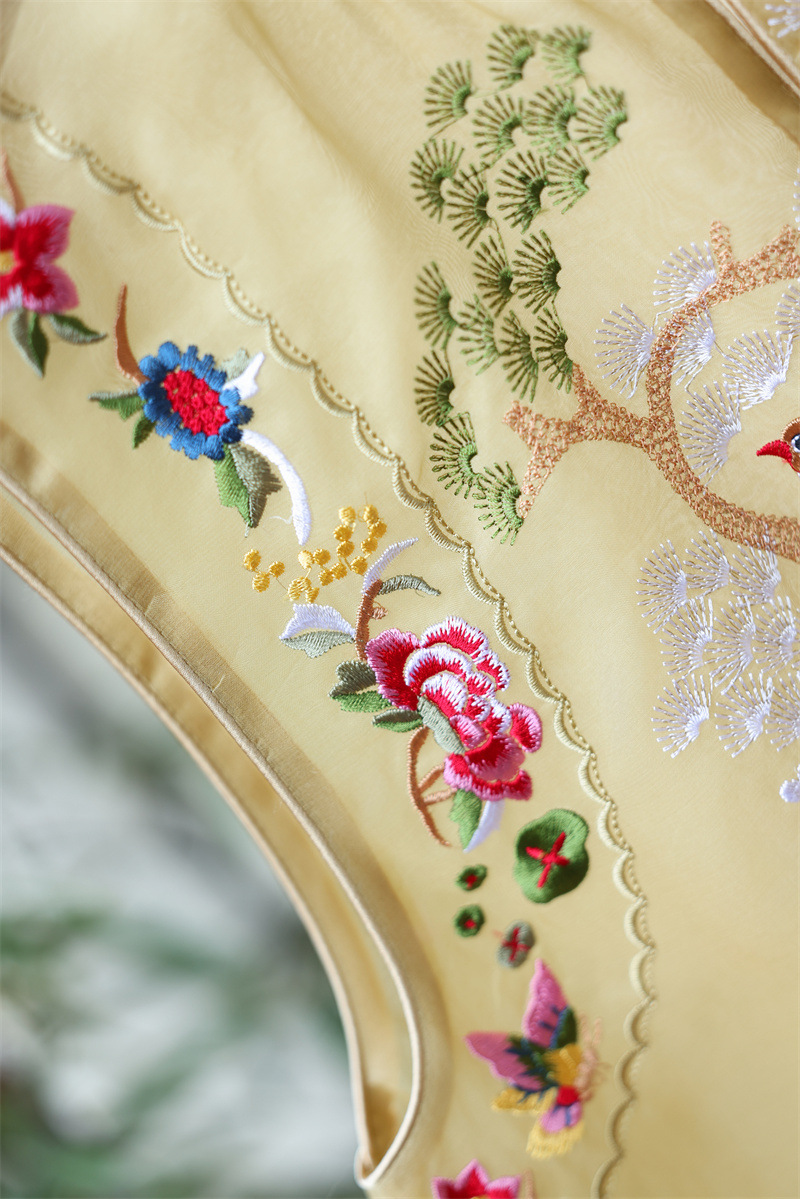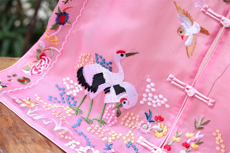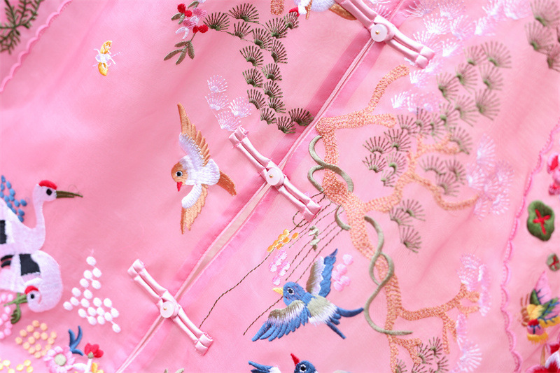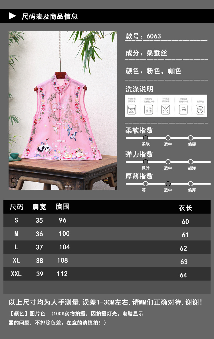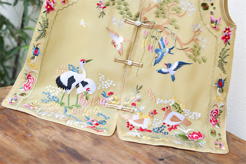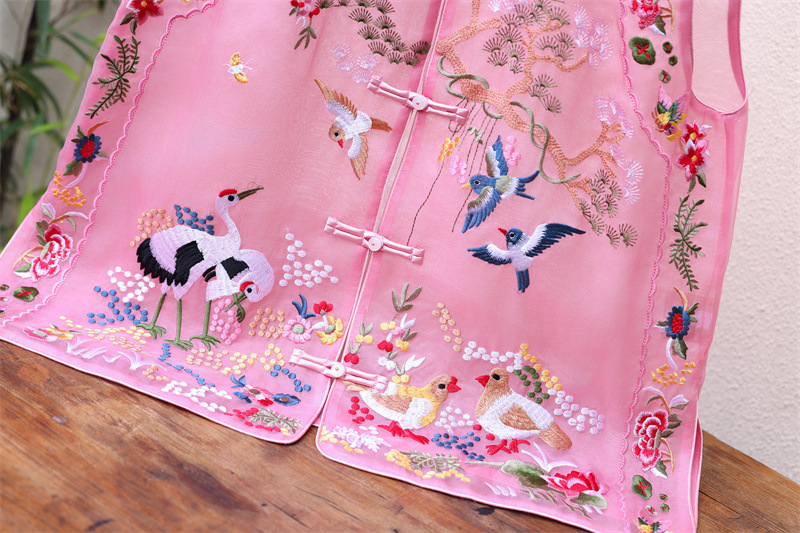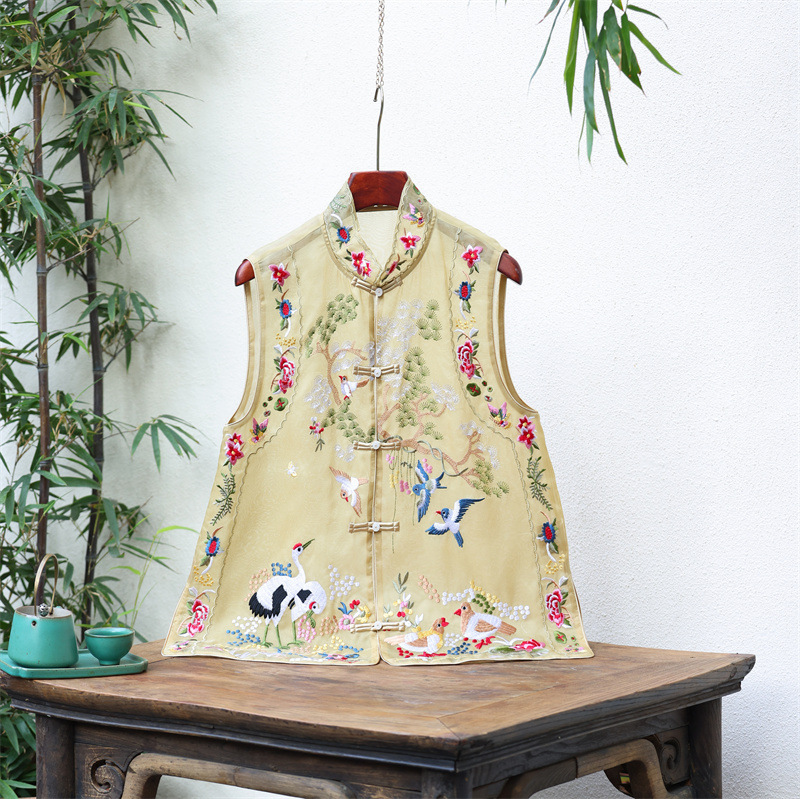 2024 봄과 여름 국가 패션 무거운 자수 더블 레이어 실크 오간자 중국 조끼 여성 버클 민소매 탑스토어 가기