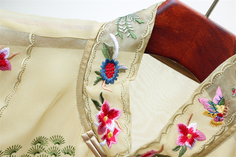 2024 봄과 여름 국가 패션 무거운 자수 더블 레이어 실크 오간자 중국 조끼 여성 버클 민소매 탑
