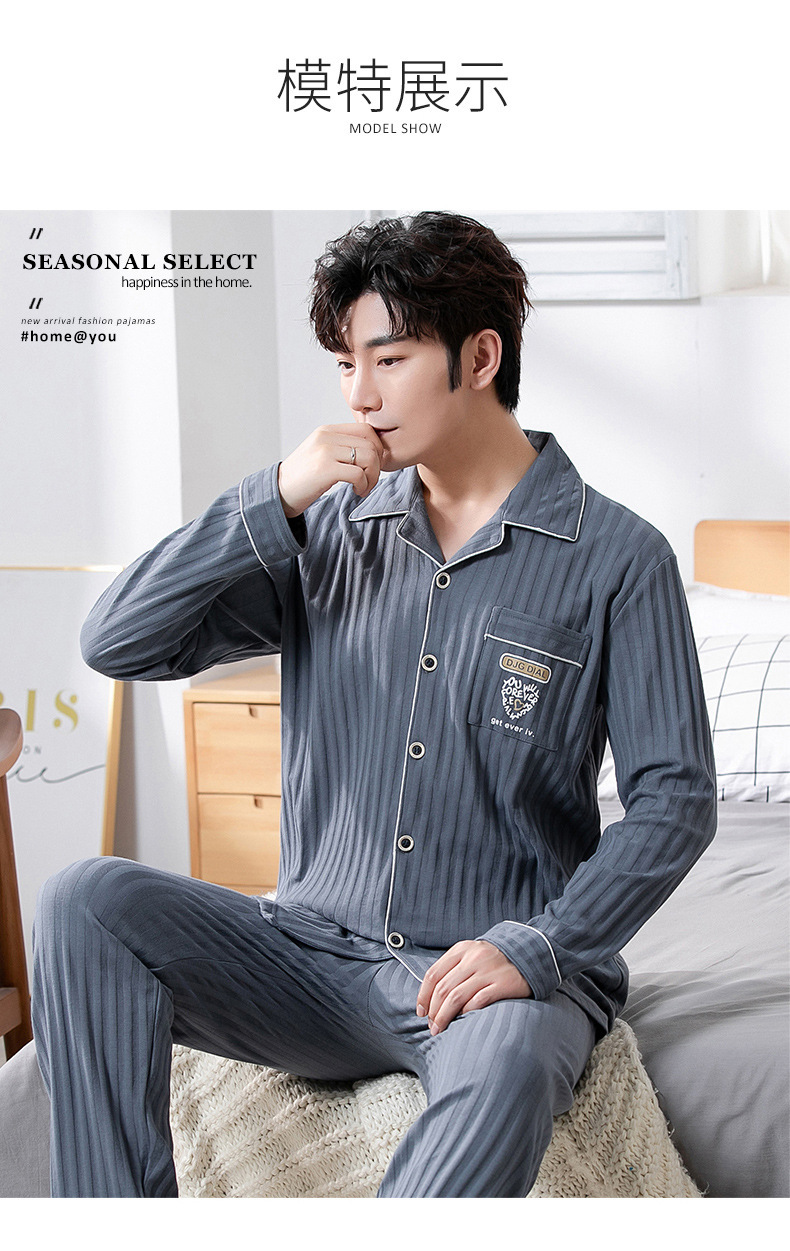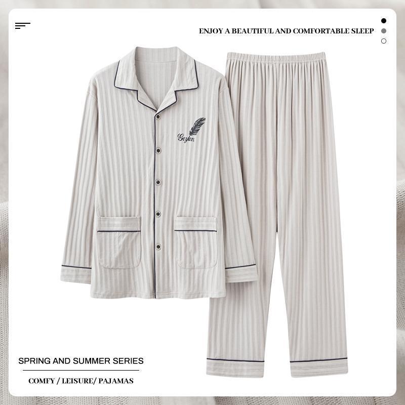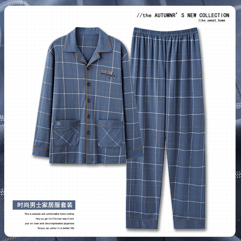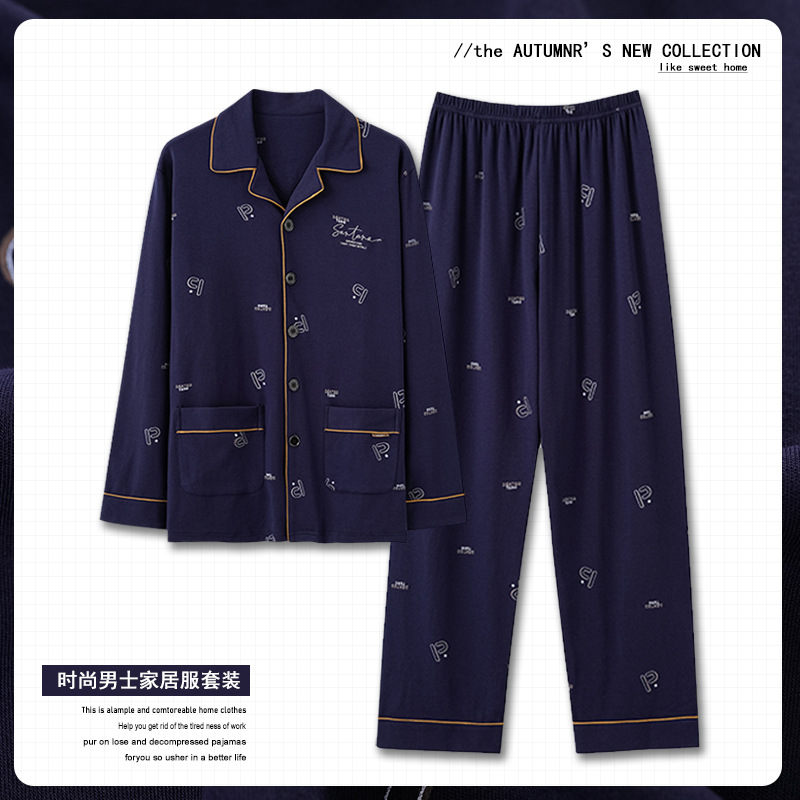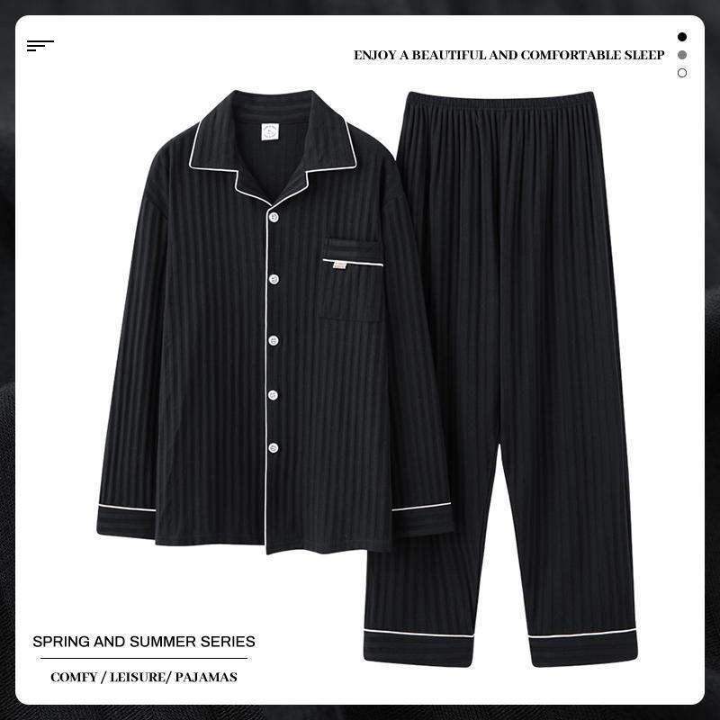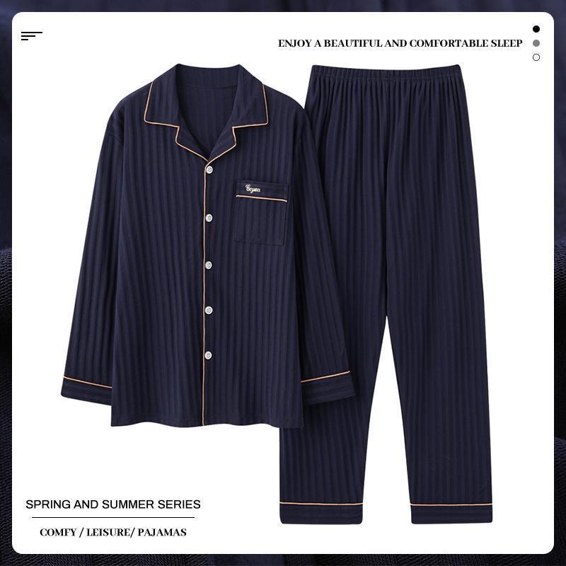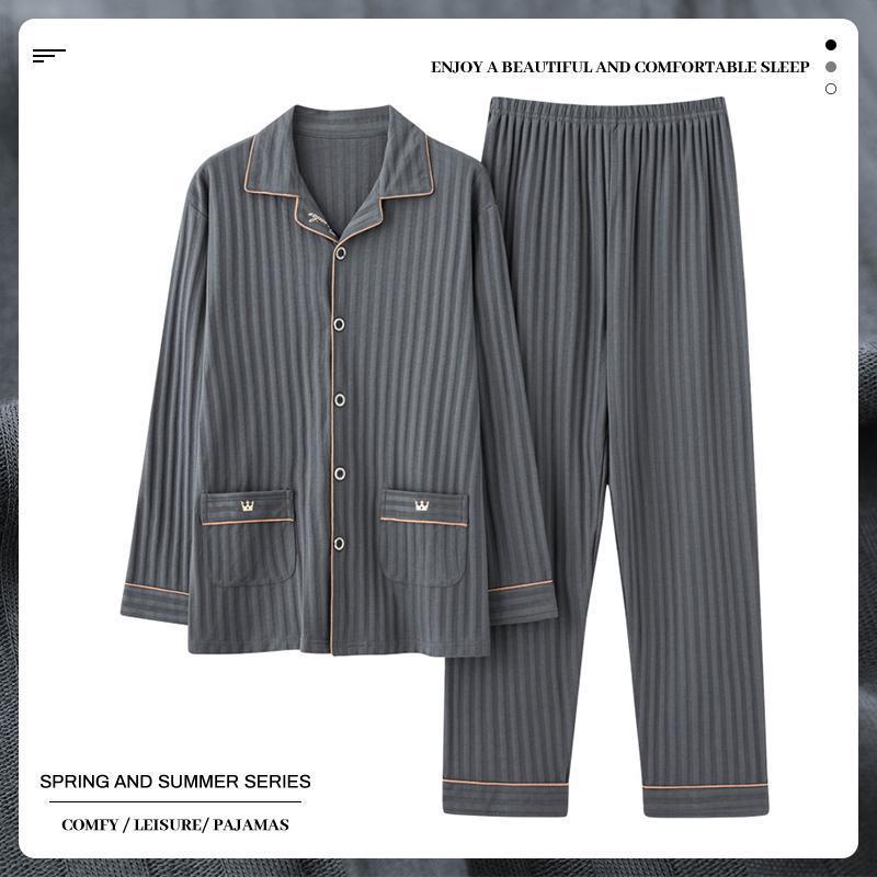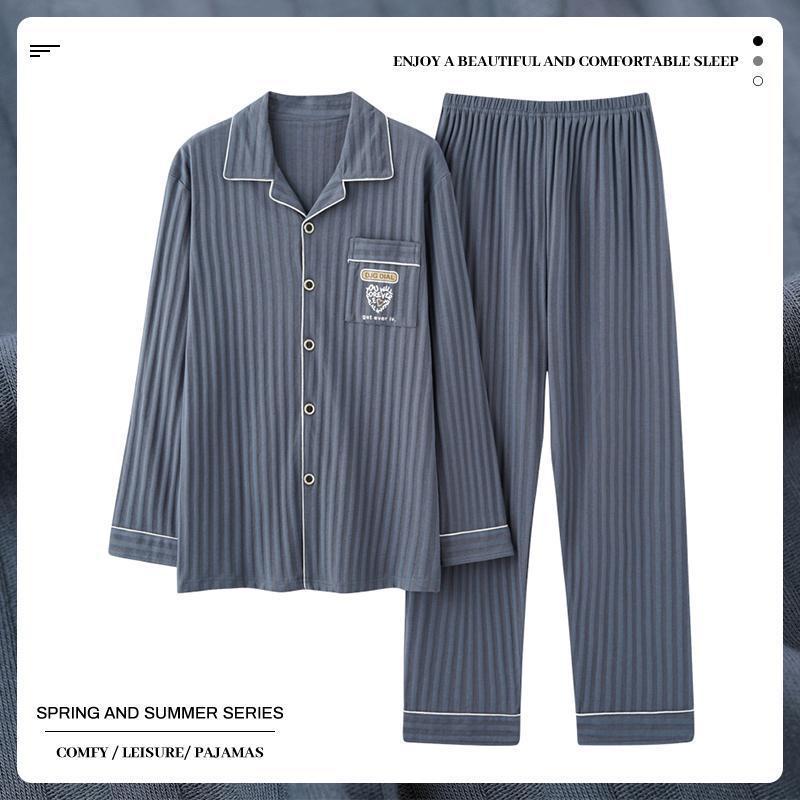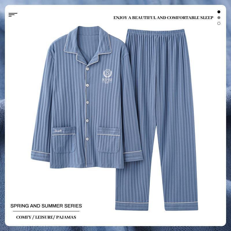 중년 남성 잠옷 봄과 가을 인공 면화 긴팔 옷깃 드로 스트링 카디건 캐주얼 심플한 홈웨어 플러스 사이즈 세트스토어 가기