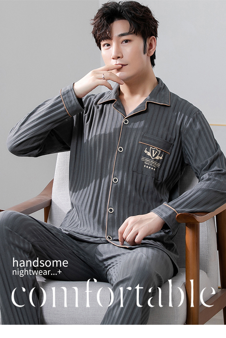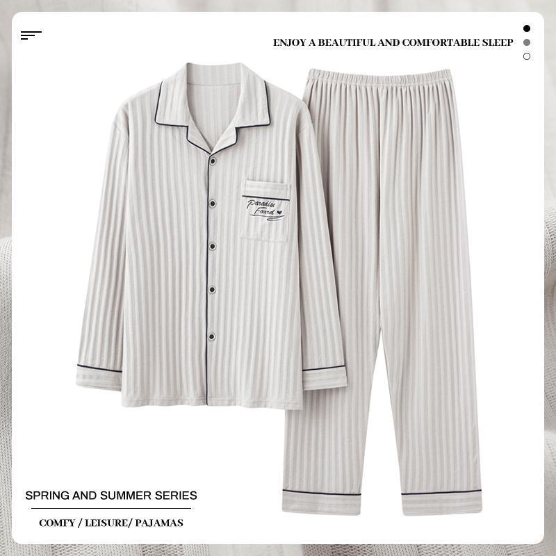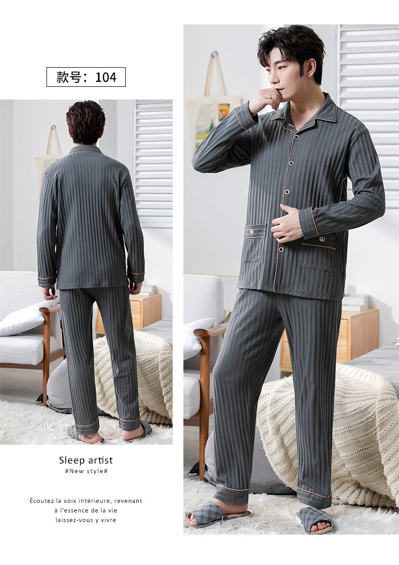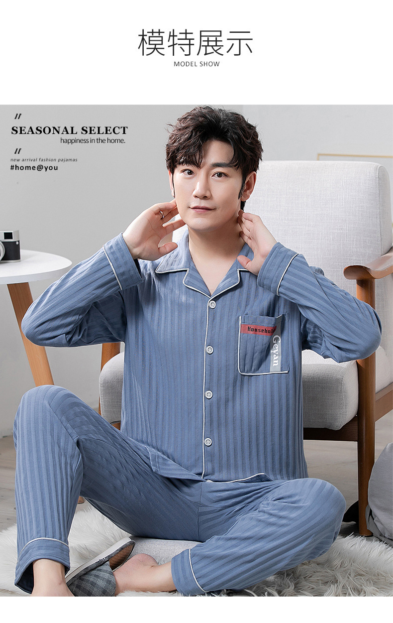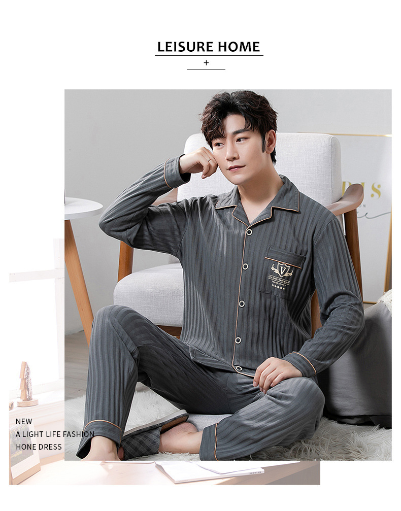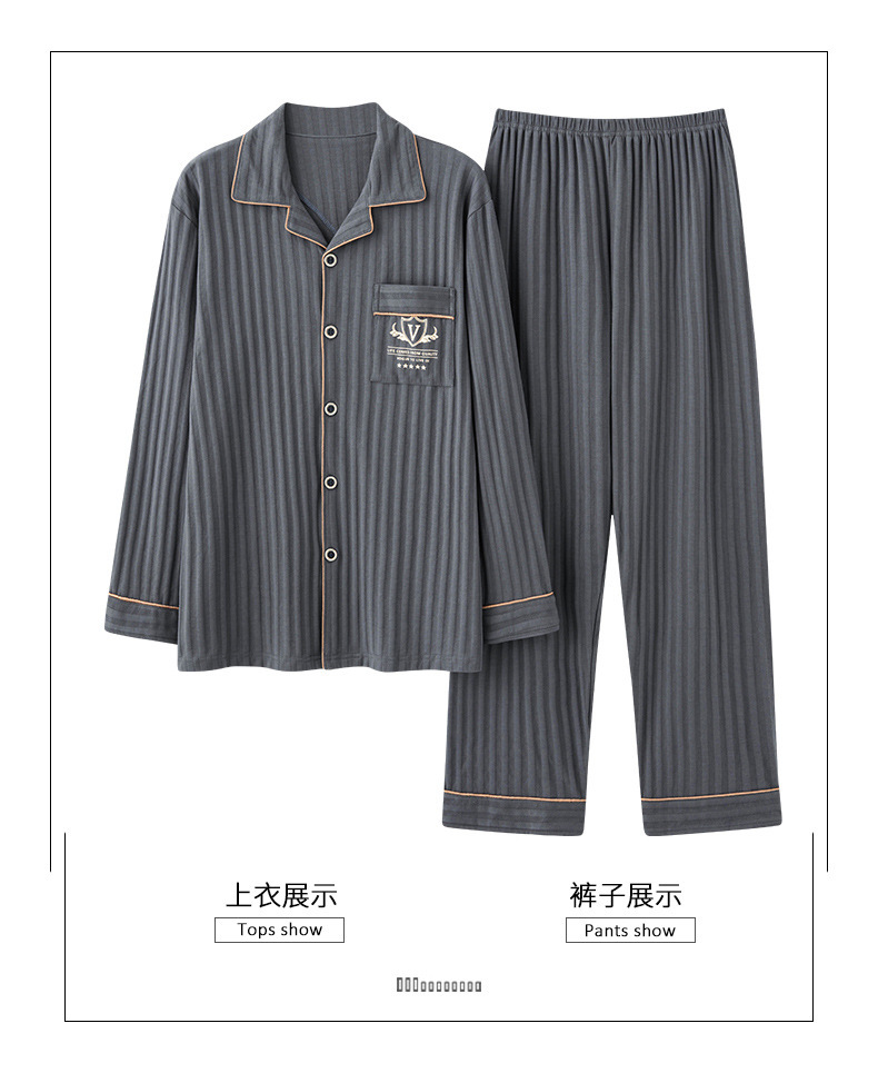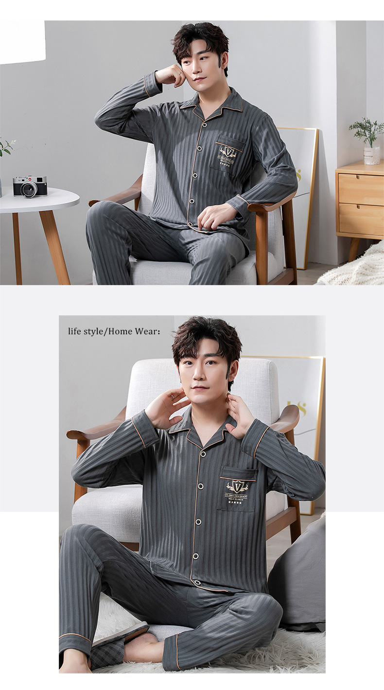중년 남성 잠옷 봄과 가을 인공 면화 긴팔 옷깃 드로 스트링 카디건 캐주얼 심플한 홈웨어 플러스 사이즈 세트스토어 가기