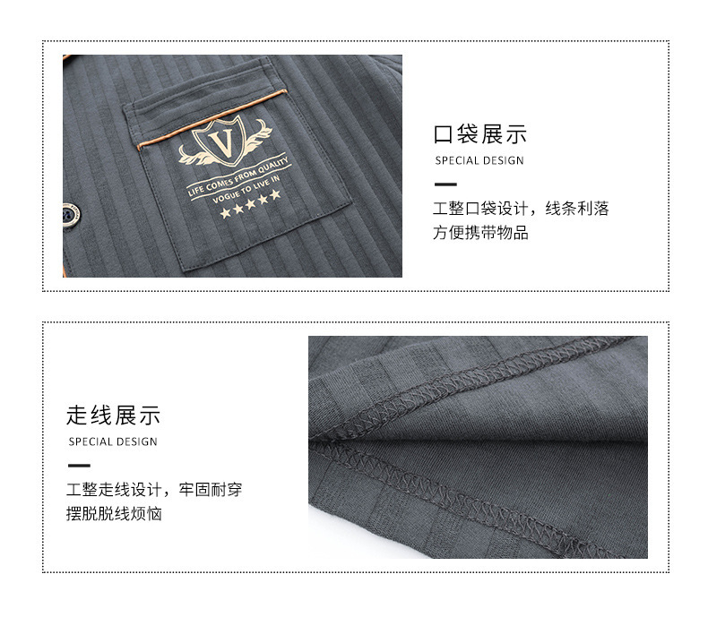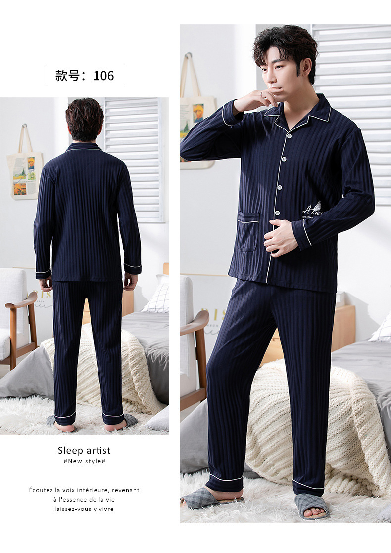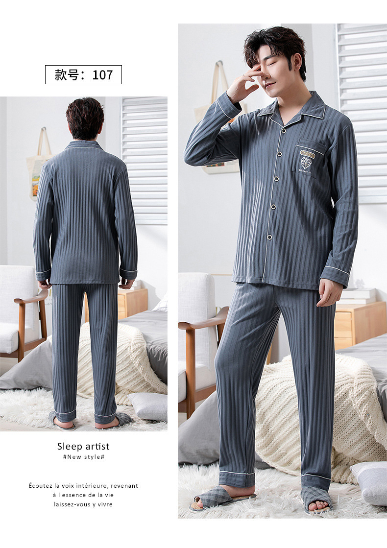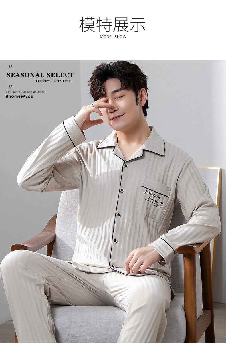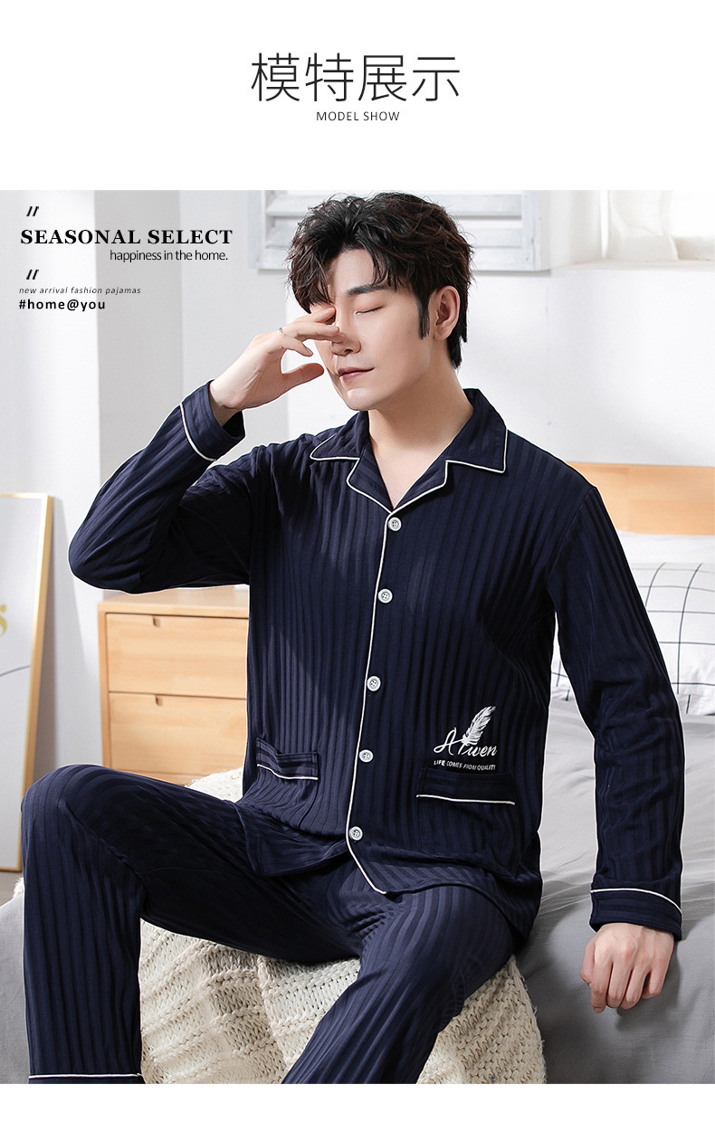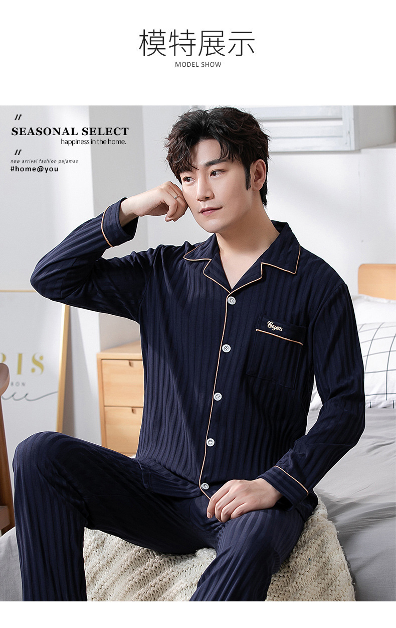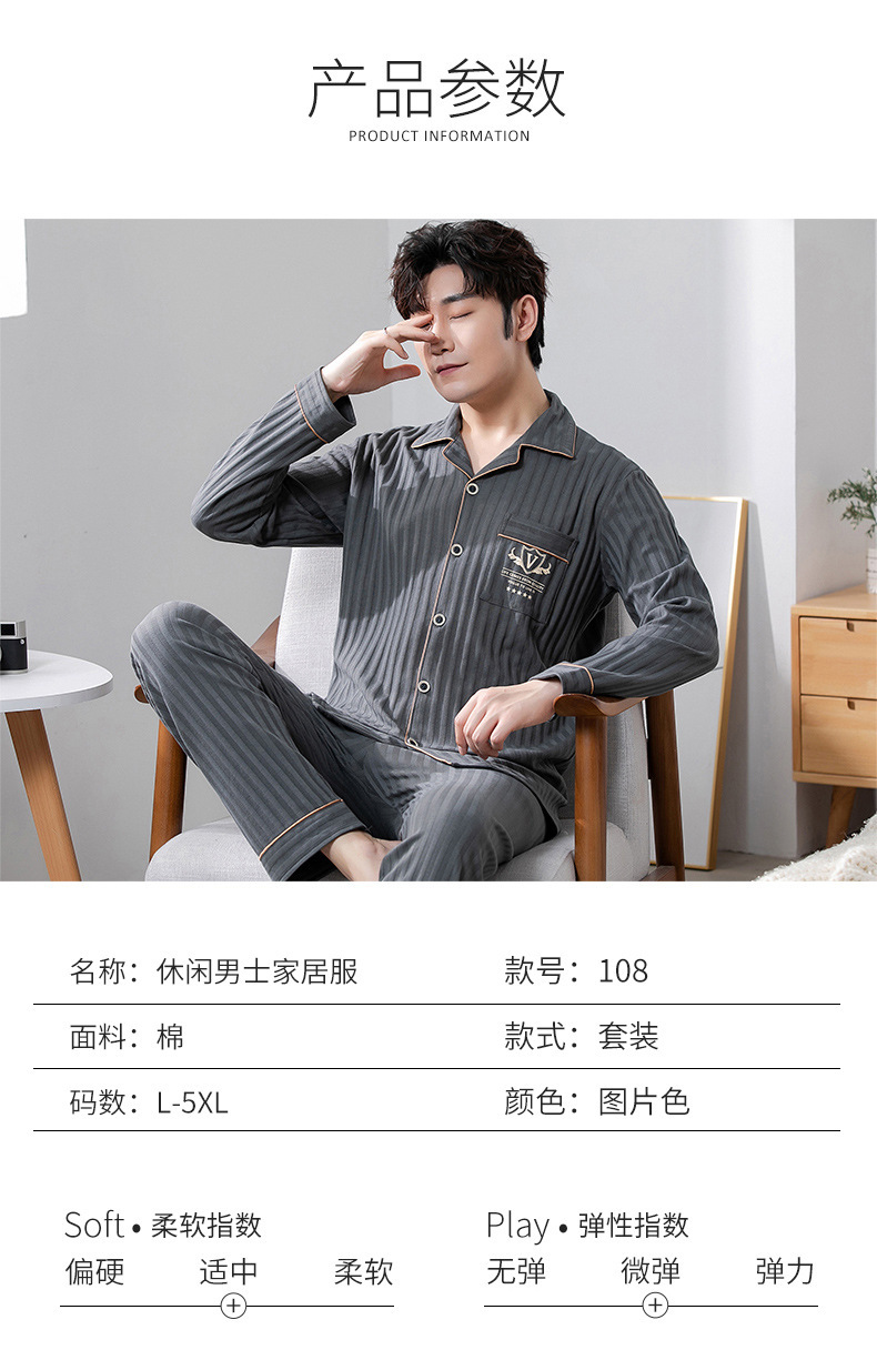 중년 남성 잠옷 봄과 가을 인공 면화 긴팔 옷깃 드로 스트링 카디건 캐주얼 심플한 홈웨어 플러스 사이즈 세트스토어 가기