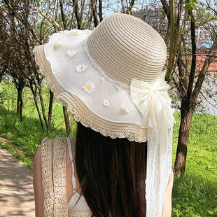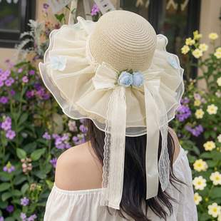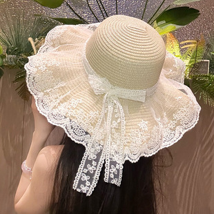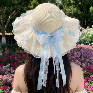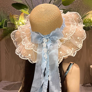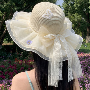 밀짚 어부 여성 일본 활 리본 큰 테두리 태양 보호 분지 모자 패션 해변 휴가 등산 모자스토어 가기