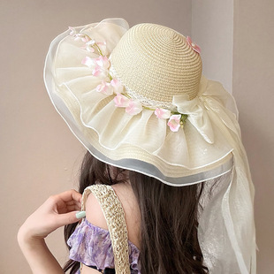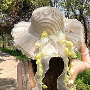 밀짚 어부 여성 일본 활 리본 큰 테두리 태양 보호 분지 모자 패션 해변 휴가 등산 모자