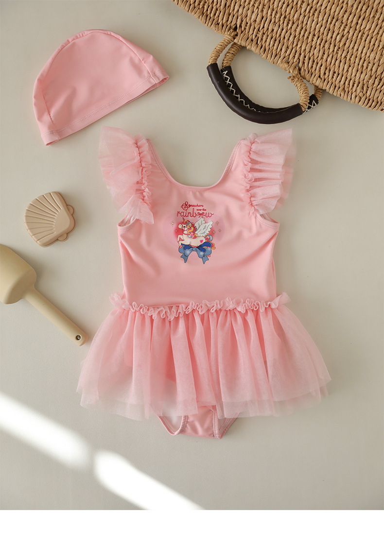 여아 메쉬 원피스 수영복 26년ks 신선하고 상큼한 여아 자외선 차단 수영복 여아 아기 해변 휴가 수영복