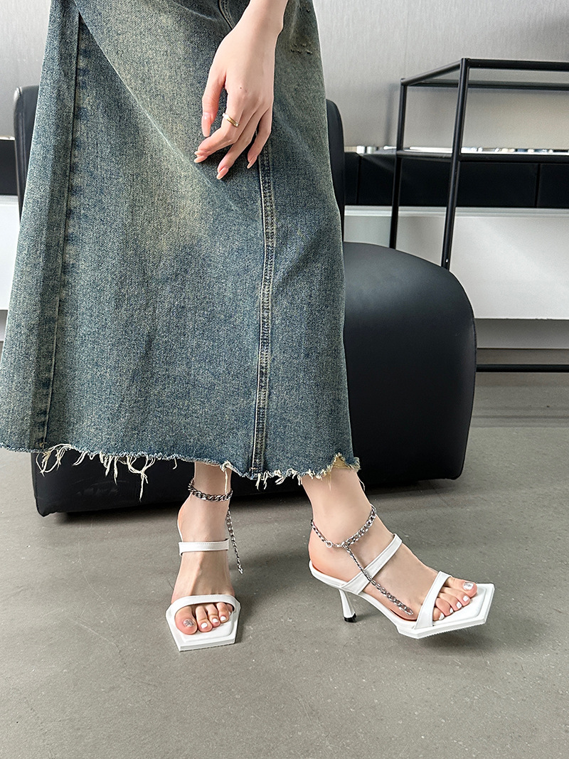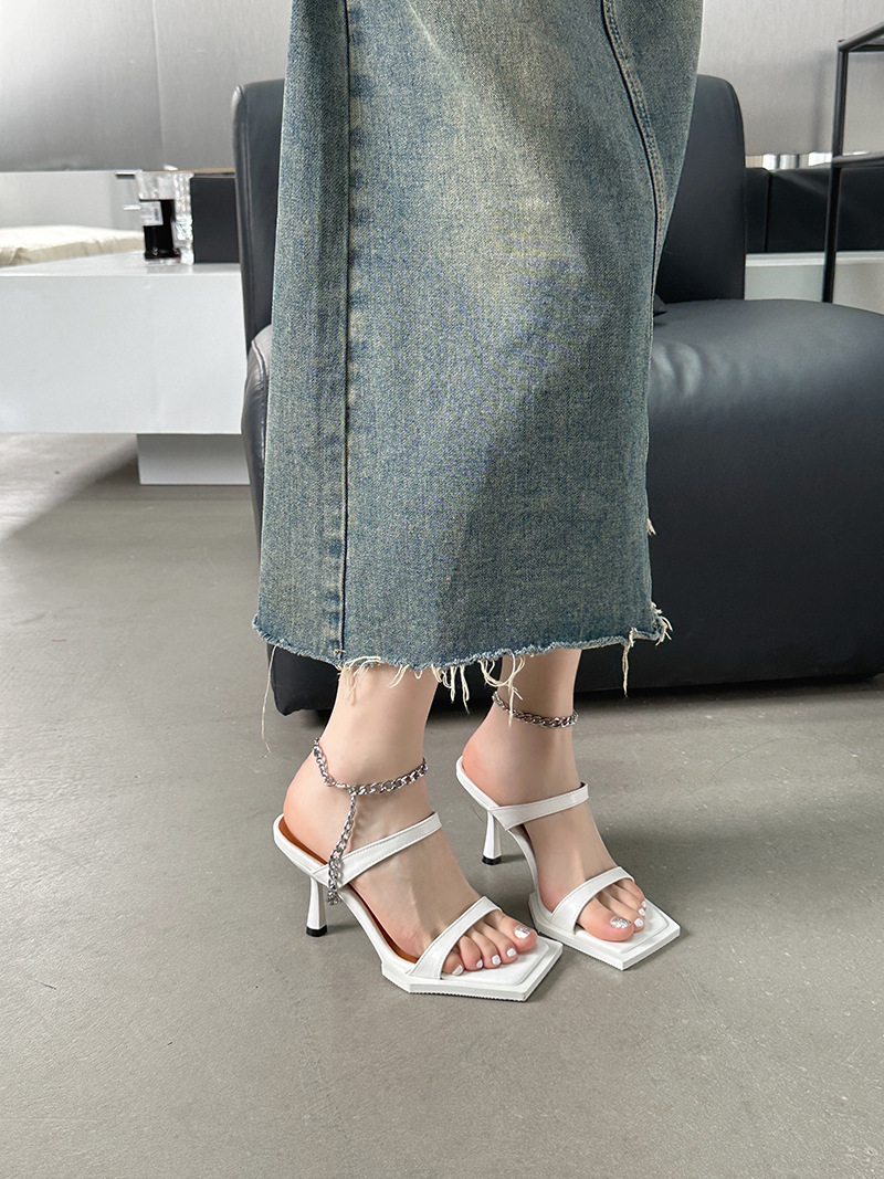 봄과 가을 2024 새로운 유행 올 매치 스틸레토 힐 샌들 간단한 다리 긴 오픈 발가락 하이힐스토어 가기