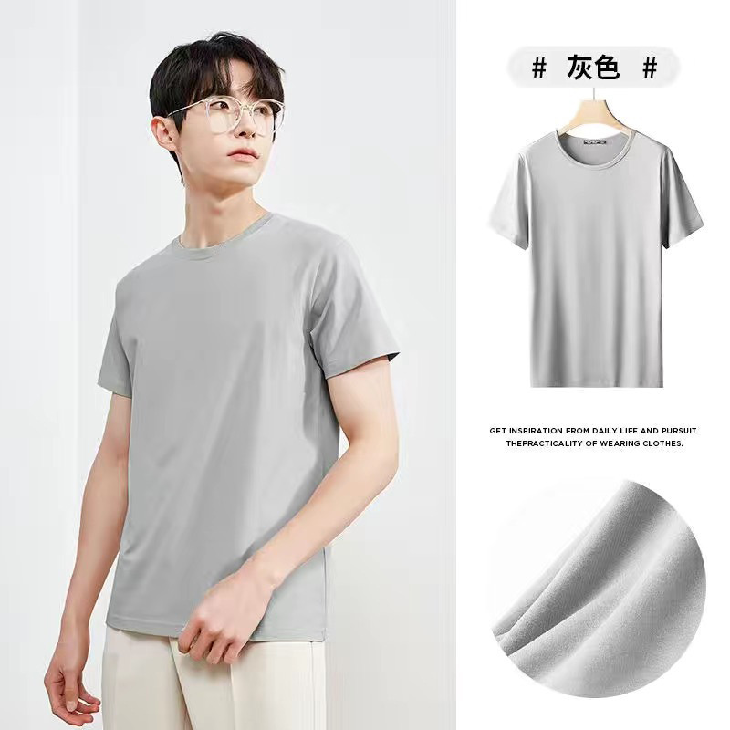 품질 반팔 티셔츠 여름 새로운 남성 슬림 핏 트렌디 한 반팔 티셔츠 라운드 넥 단색 티셔츠 탑 옷 올 매치스토어 가기