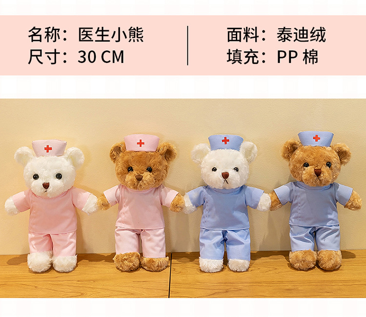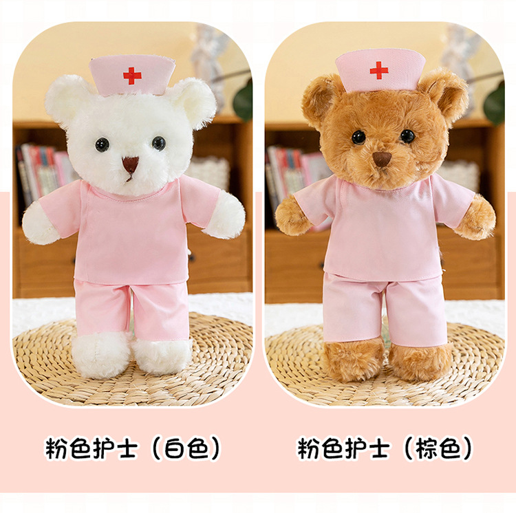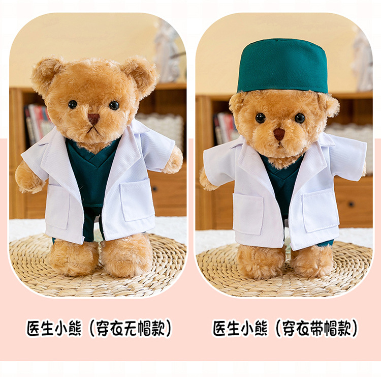 창조적 인 의사 곰 인형 흰 코트 간호사 유니폼 곰 인형 봉제 장난감 인쇄 가능한 로고 활동 선물스토어 가기