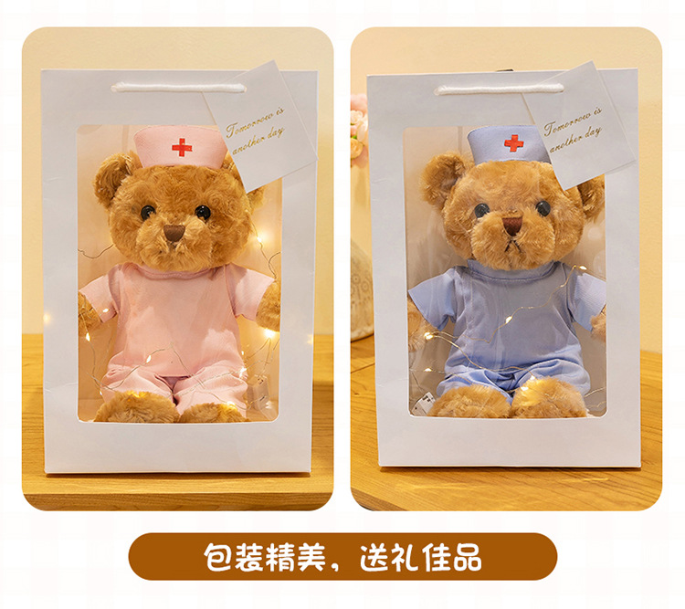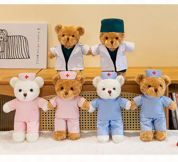 창조적 인 의사 곰 인형 흰 코트 간호사 유니폼 곰 인형 봉제 장난감 인쇄 가능한 로고 활동 선물