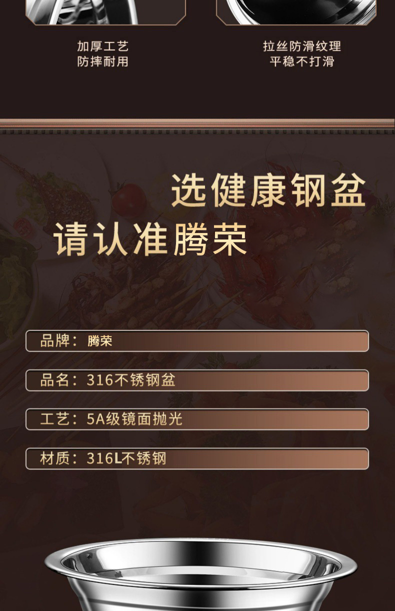 식품 등급 316 스테인레스 스틸 그릇 작은 철 그릇 수프 그릇 가정용 어린이 먹는 그릇 수프 쌀 야채 냄비스토어 가기
