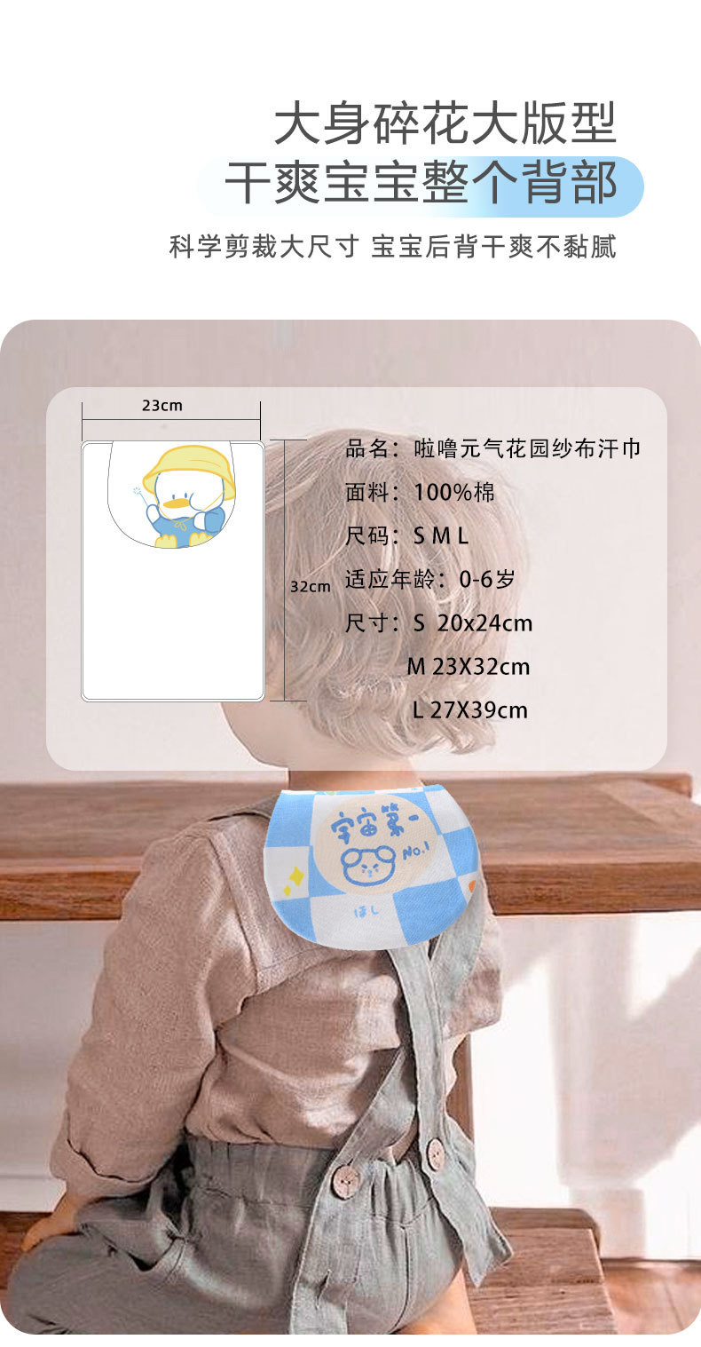 아기 땀 흡수성 수건 아기 여름면 거즈 유치원 패드 배낭 중간 및 큰 어린이 땀 흡수성 수건 통기성 땀 흡수성스토어 가기