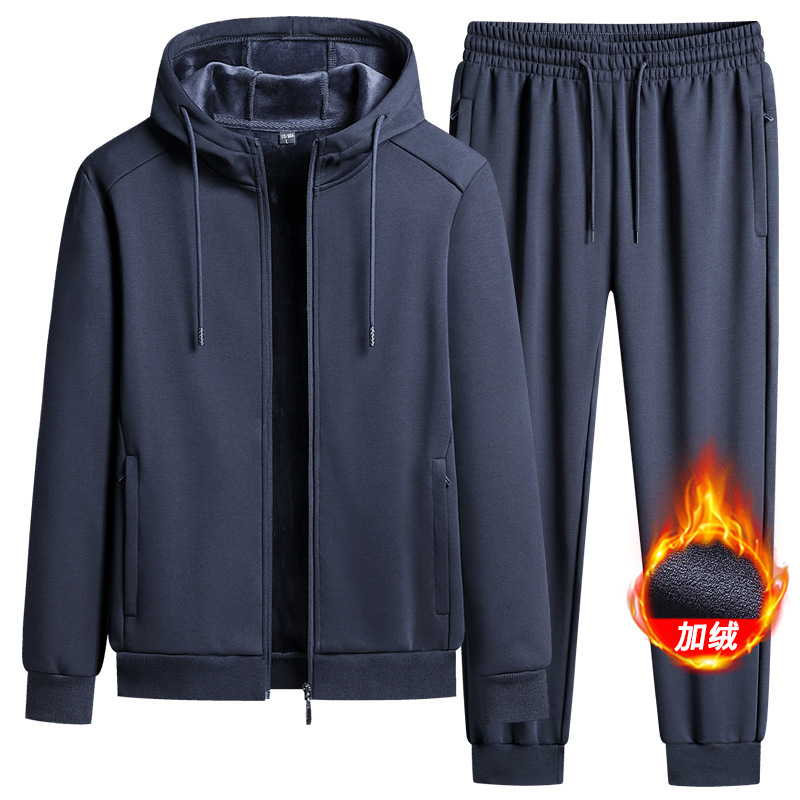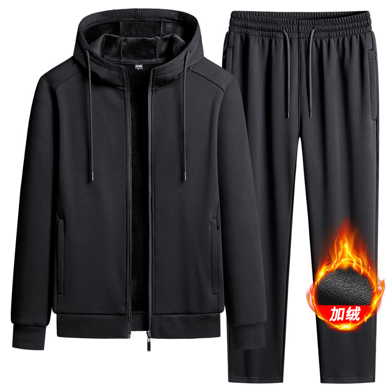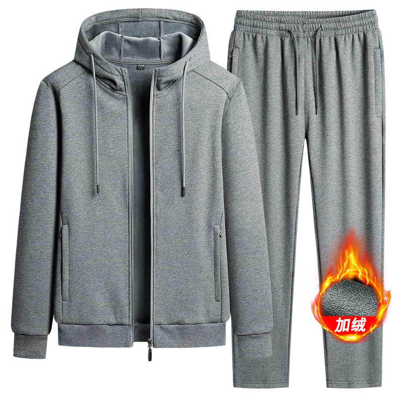 벨벳 두꺼운 코튼 후드 세트 남성 스포츠 세트 레저 운동 순면 봄과 가을 세트 코트