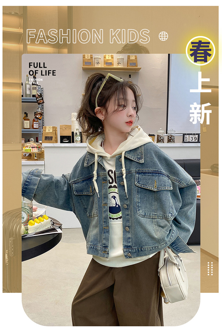 소녀 데님 자켓 봄 2024 새로운 어린이 서양식 재킷 어린이 봄과 가을 소녀 캐주얼 자켓 탑스토어 가기