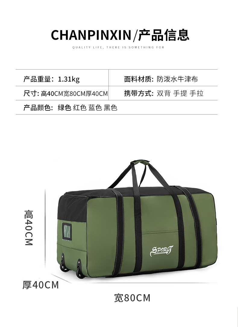 국경을 넘는 맞춤형 이동용 짐 가방, 접이식 의류 보관 대형 가방, 휴대용 다기능 대용량 바퀴 달린 여행 가방