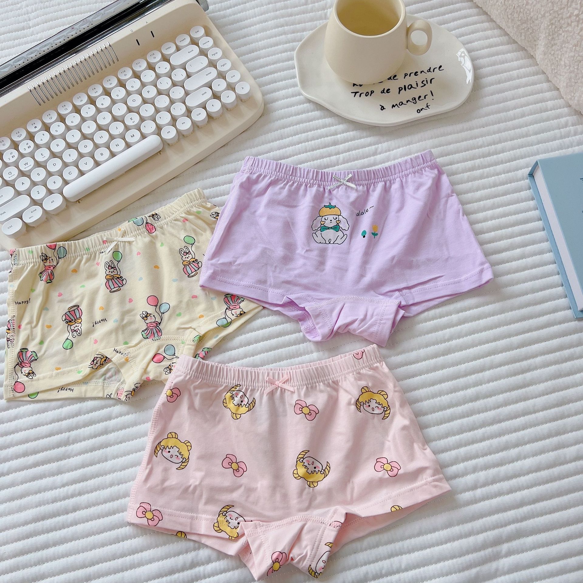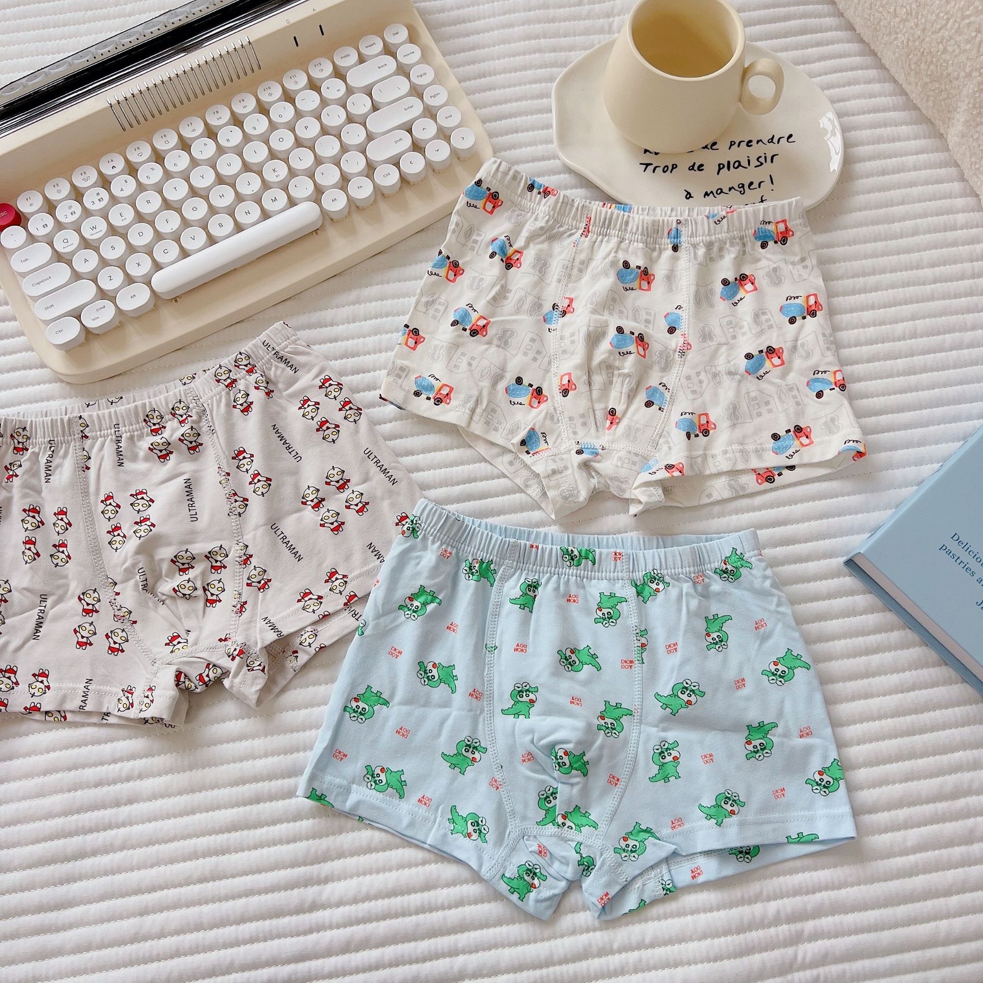 아동용 속옷 라이크라 코튼 프린트 남아 및 여아 박스형 3팩 한국식 아동용 복서 팬티스토어 가기
