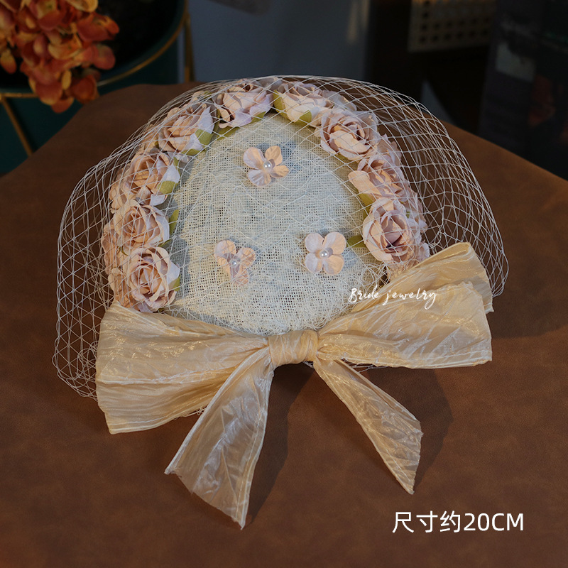 모리 신부 핑크 꽃 모자 귀여운 달콤한 웨딩 원피스 머리 장식 사진 액세서리 빈티지 머리 장식 꽃 보석스토어 가기