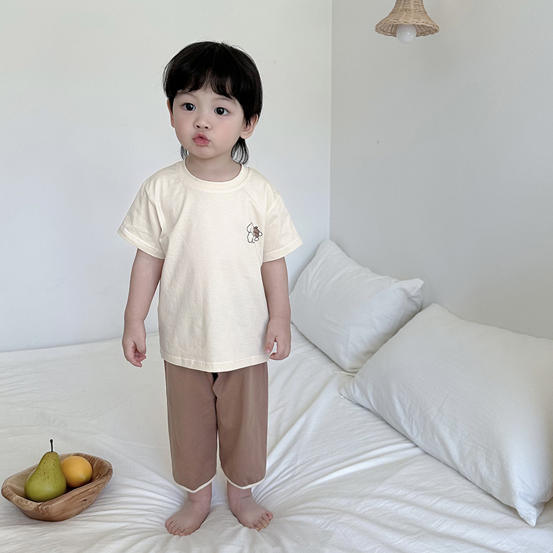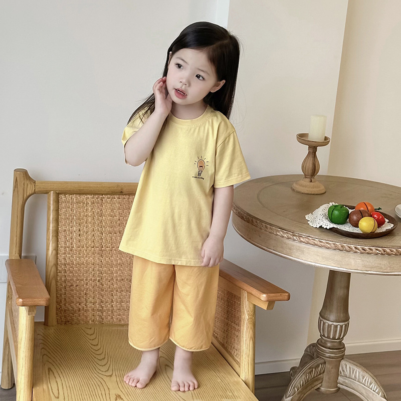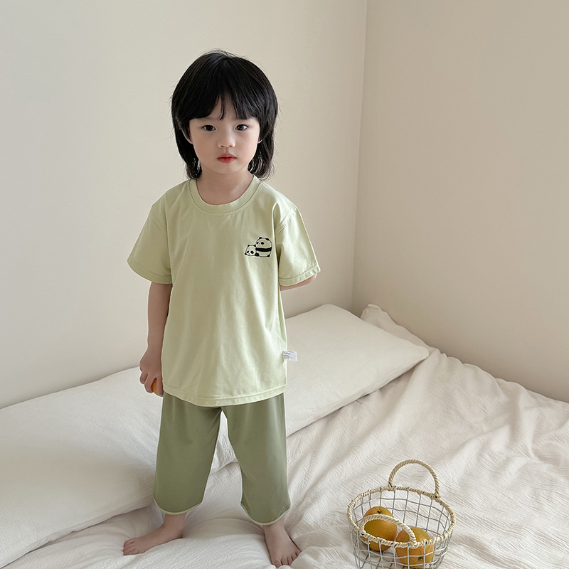 남학생과 여학생 3/4 소매 중장 바지 침류를위한 여름 얇은 통기성 반팔 셔츠 세트 어린이 가정스토어 가기