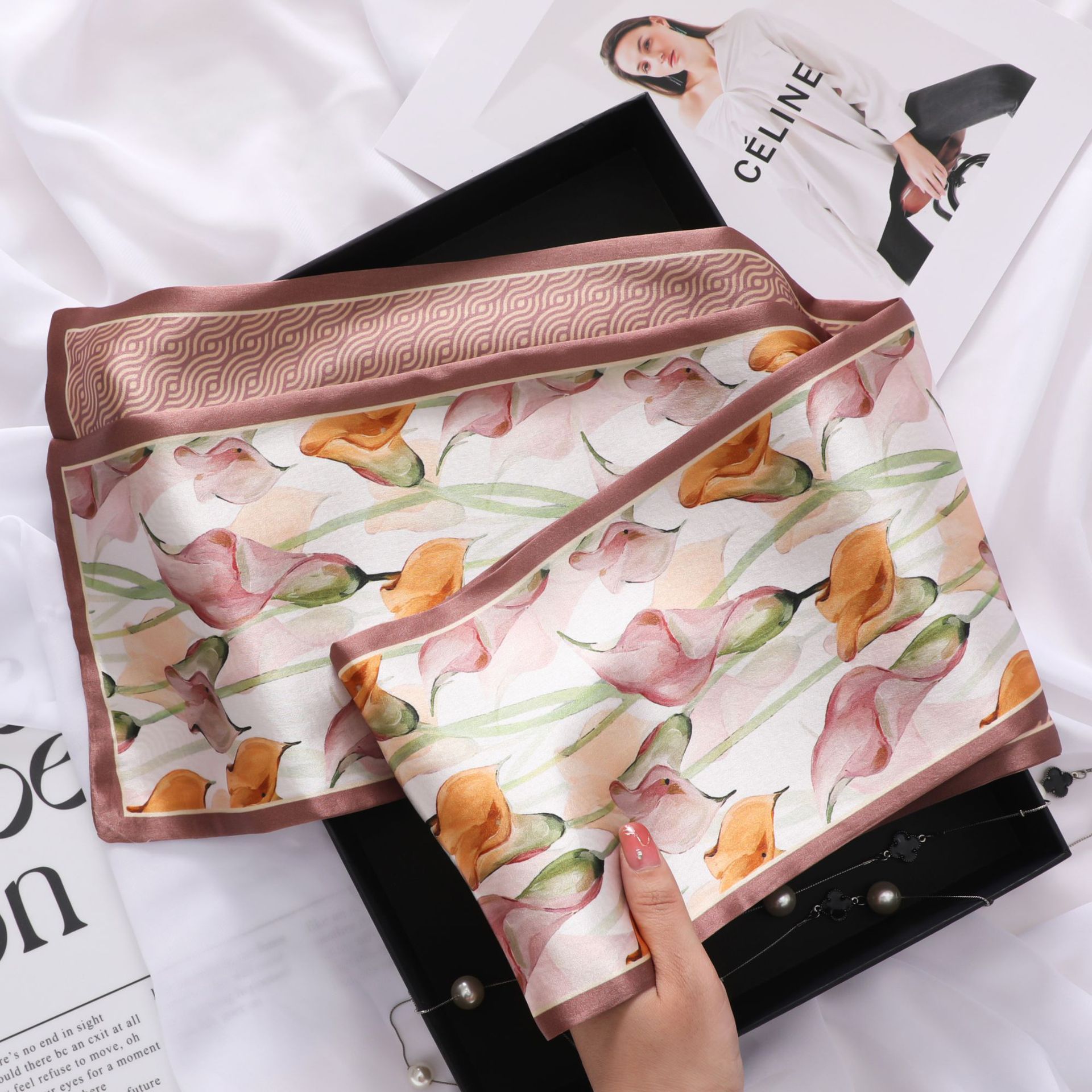 새로운 뽕나무 실크 스카프 여성의 얇은 좁은 리본 봄과 여름 한국 스타일 양면 스카프 긴 실크 스카프